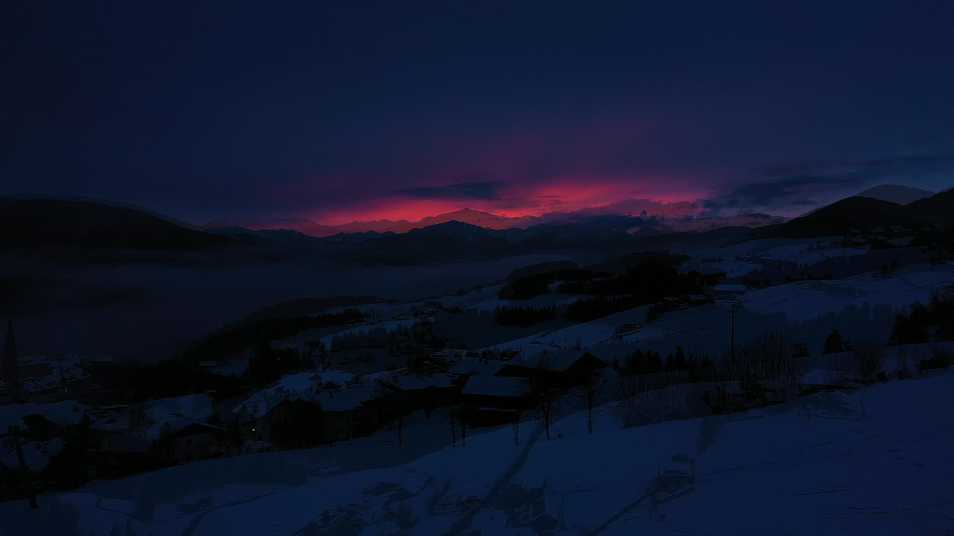 The twilight on the Dolomites, the Valley Pusteria in the area of Terento