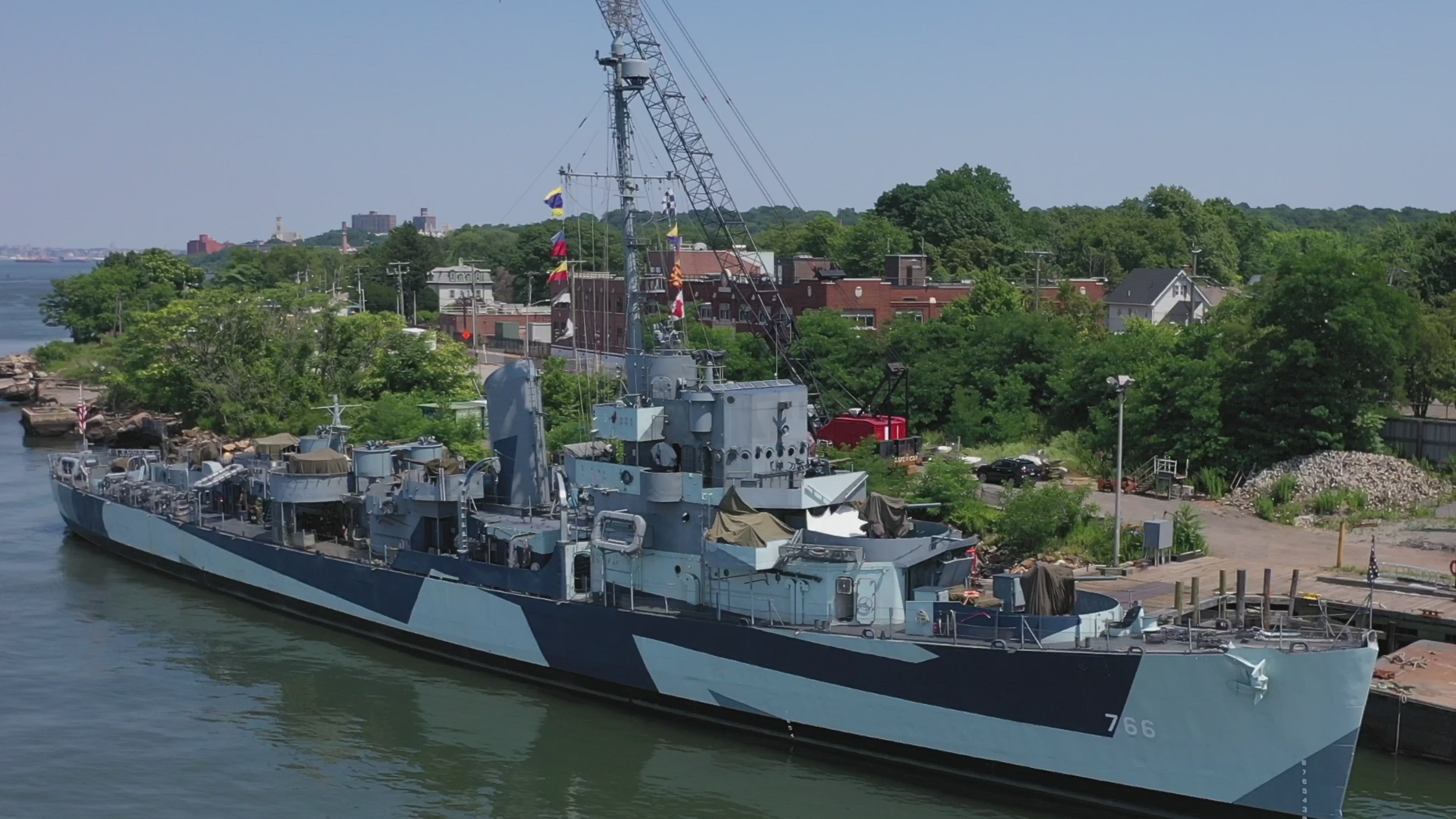 AirVuz contributor onewheeldrone brings us this excellent drone video of the USS Slater, a destroyer escort. Launched in 1944, the Cannon-class ship was used to escort convoys across the Atlantic Ocean during World War II. The 93 meter long ship (just over 300 ft.) displaces a little over 1.2k tons. De-commissioned shortly after the war, the ship was transferred to the navy of Greece, where it served for nearly three decades before being retired for good in 1991. It's now a museum ship docked on the Hudson River near Albany, New York.