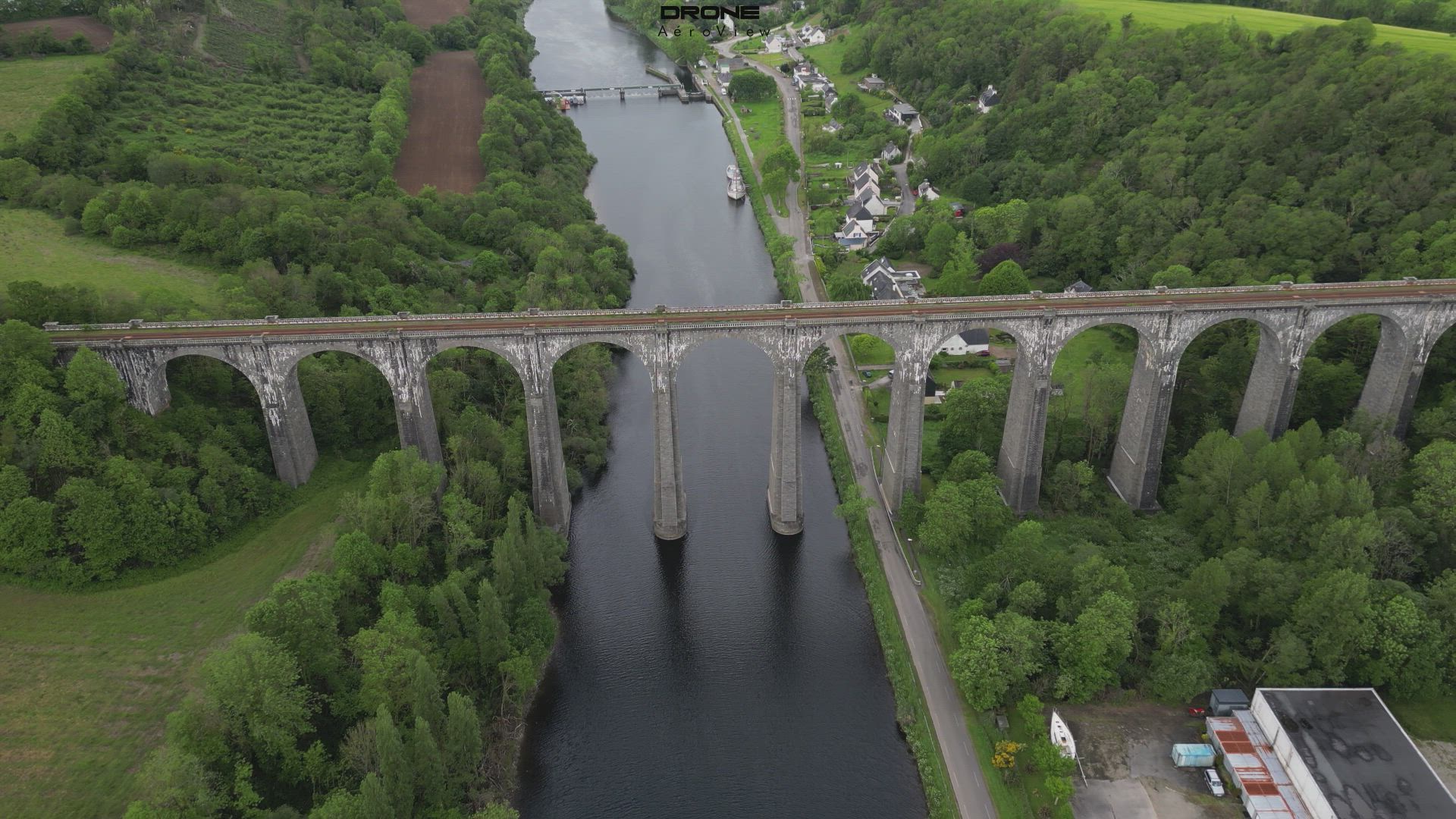 The railway viaduct on the Landerneau-Quimper line spans the Aulne near Port-Launay