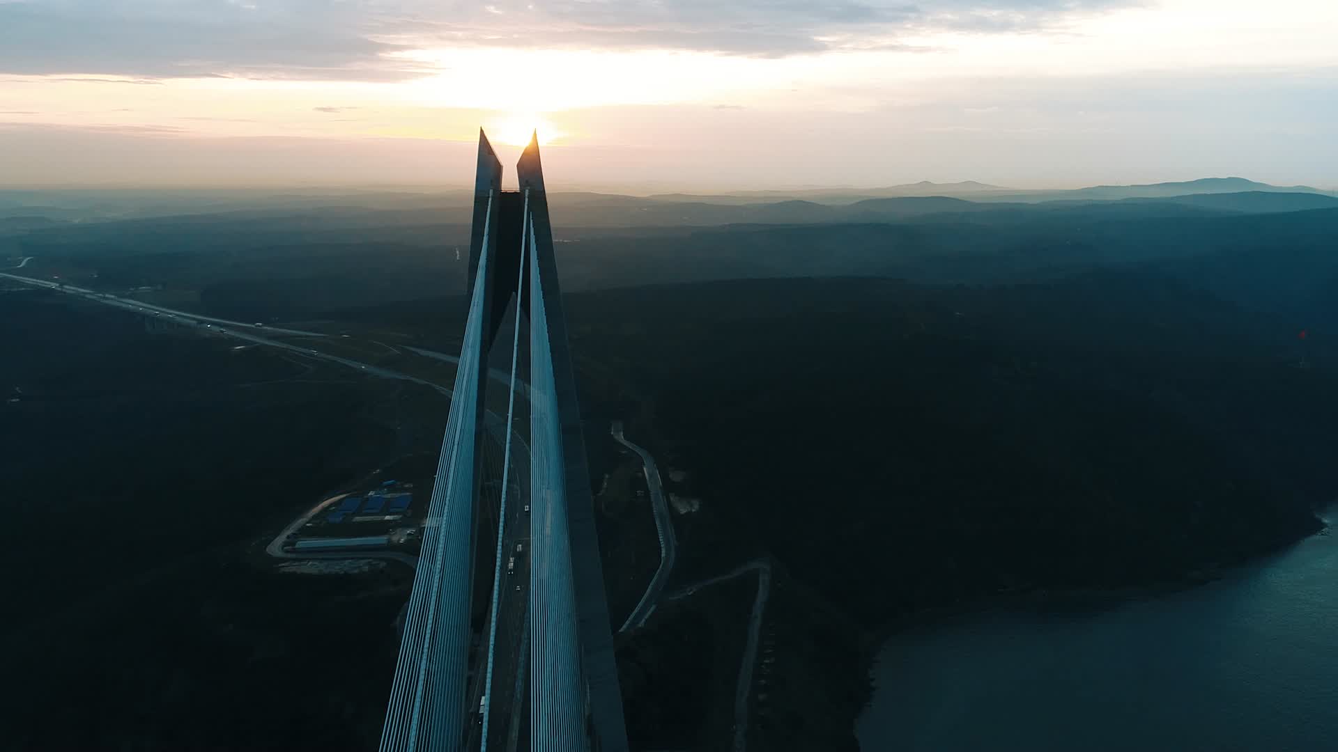 See the Yavuz Sultan Selim Bridge of Istanbul, Turkey in this 4K drone video by iskenderfilm. The suspension bridge is just over 2.16k meters long (around 7k ft.), the longest (by far) of the three bridges which spans the Bosphorus Strait in Turkey's largest city. With a structural height of about 320 meters (about 1.05k ft.), it's also the world's second-tallest bridge. Carrying both rail and motor traffic, the bridge opened in 2016 and lies north of the Strait's other two bridges: the July 15th Martyr's Bridge and the Fatih Sultan Mehmet Bridge.