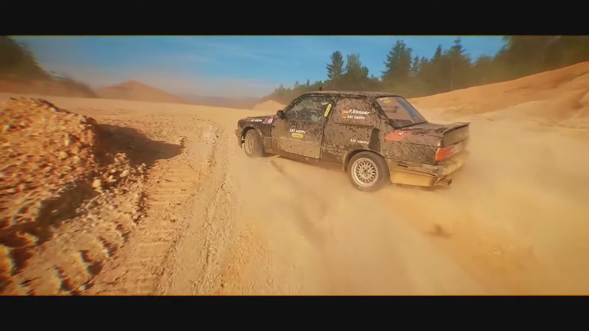 Chasing a Rally car drifting. Hope you like it. Dont forget to mention ewhat do you think about the last scene with the wheel.