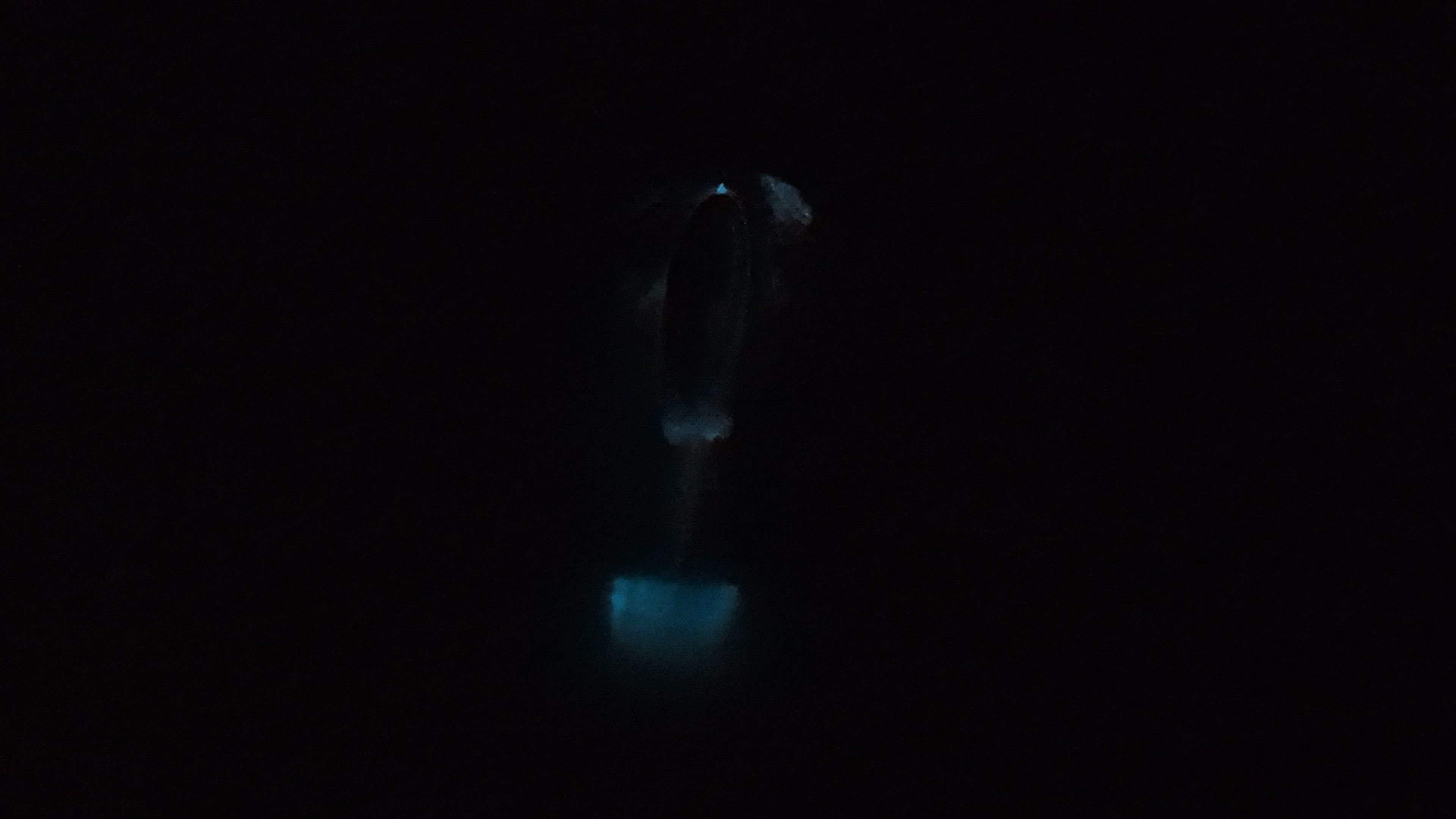 Dolphin mom and baby swimming in the bioluminescence off Manhattan Beach pier California