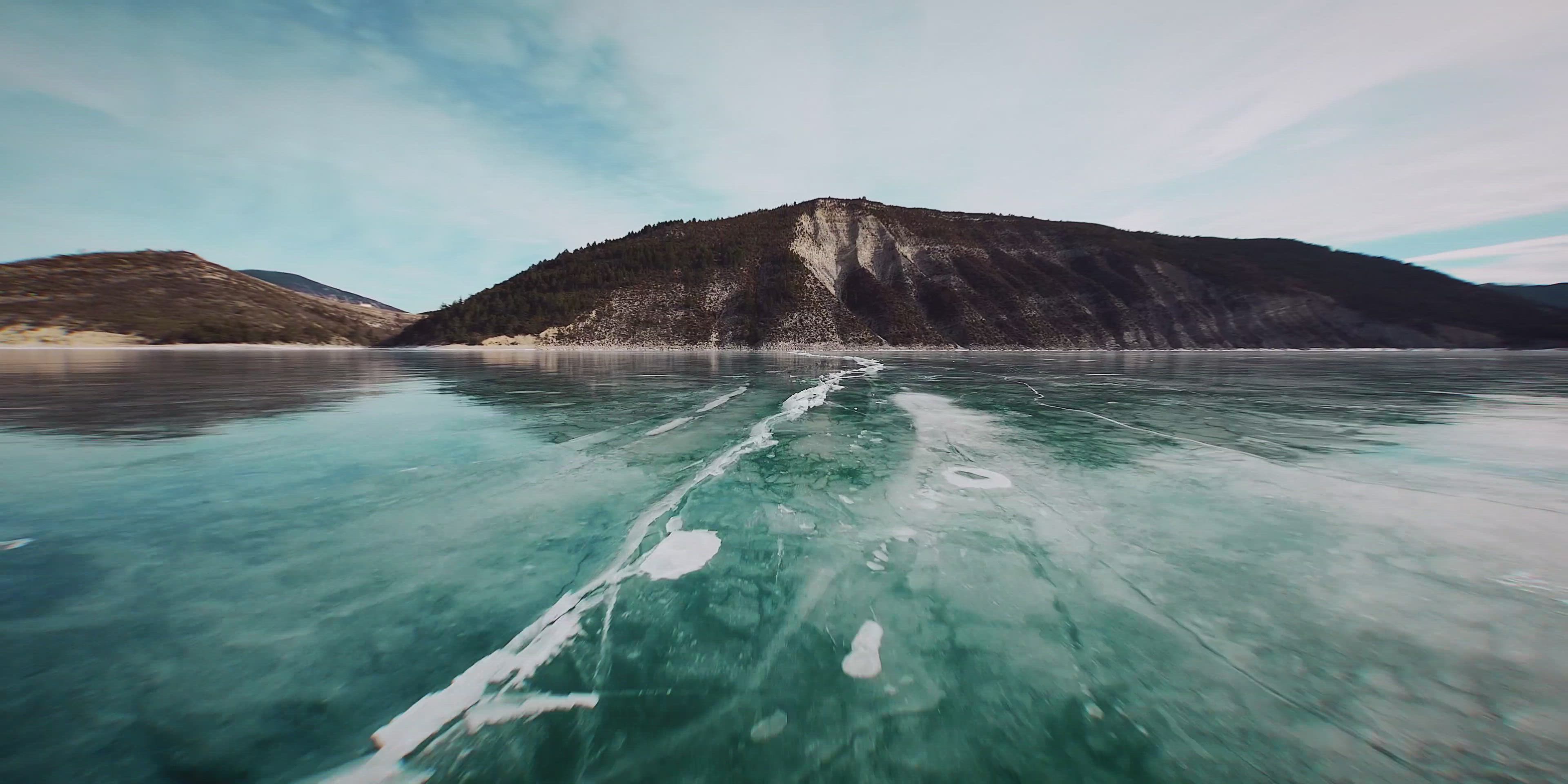 Flying Over a Frozen lake