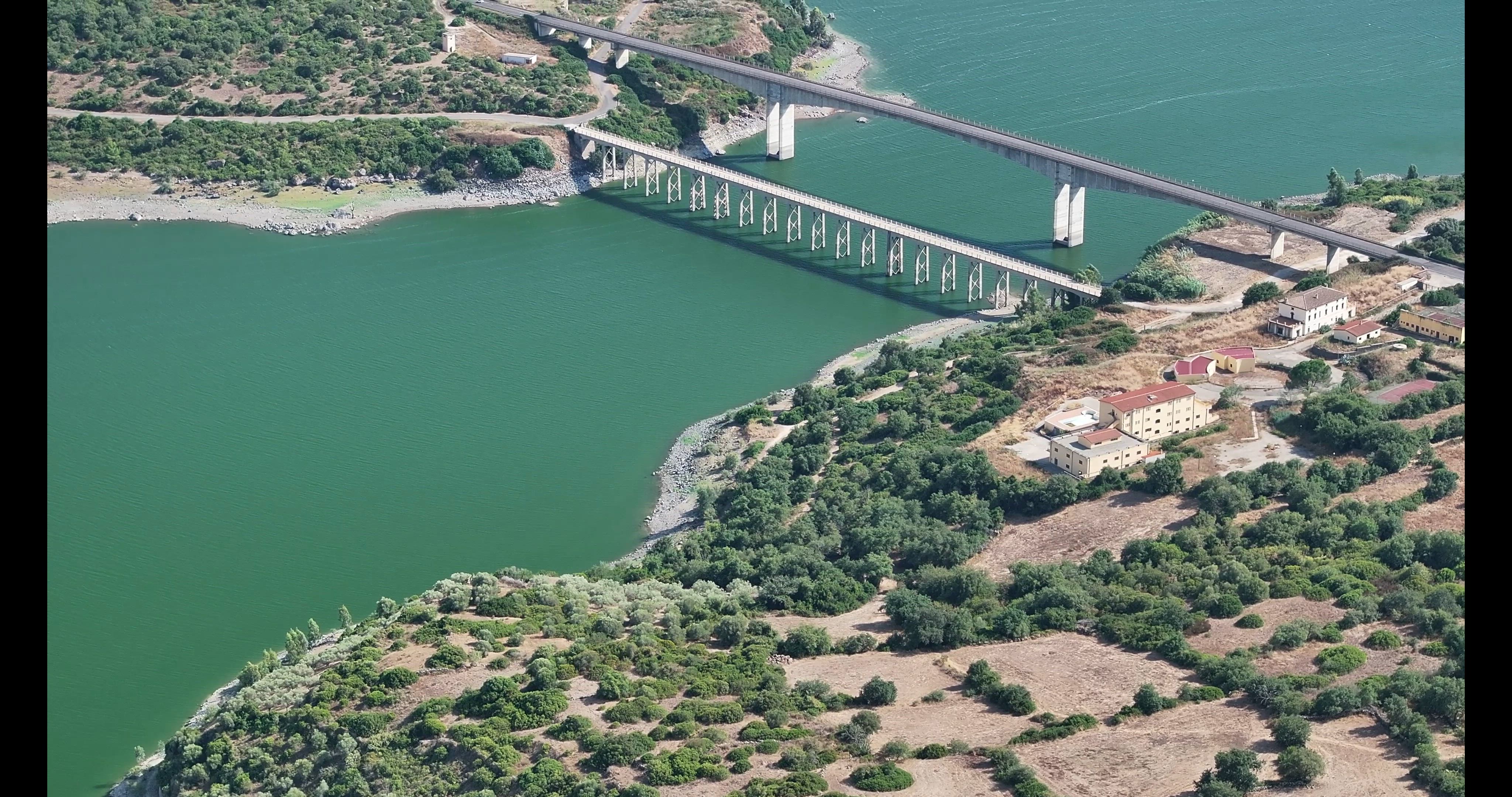 DJI Mavic 3 pro - Lake Omodeo, province of Oristano, in the historical subregion of Barigadu. Lake Omodeo (in Sardinian Lagu Omodeu) is an artificial lake in Sardinia. It is located in the province of Oristano, in the historical subregion of Barigadu. It is formed by the damming of the Tirso river by the Santa Chiara dam first and by the more recent Eleonora d'Arborea dam, located respectively in the territory of Ula Tirso and Busachi. The reservoir is named after Angelo Omodeo, the engineer who oversaw the design of the first dam, which remains partially submerged by the waters of the new reservoir. The first artificial basin was created with the construction of the Santa Chiara dam, near Ula Tirso, which was completed in 1924, and inaugurated on April 28 of the same year in the presence of King Vittorio Emanuele III, creating the largest artificial lake in Europe, which had a maximum capacity of 403 million cubic meters of water. The Eleonora d'Arborea Dam The works for its construction were part of a larger project, which also included the reclamation of the Oristano plain. 16,000 workers were employed to carry out the project drawn up by the engineer Angelo Omodeo, who also participated in the construction of the large dams on the Nile. The construction was completed in five years, under the direction of the engineer Giulio Dolcetta. More than 22 km long, the basin was built in order to regulate the flooding of the river, produce electricity and for the irrigation of the Campidano plain of Oristano. The creation of the artificial basin also caused the submersion of some archaeological sites (nuraghi, giants' tombs, and the pre-Nuragic settlement of Serra Linta) and the small village of Zuri, which was rebuilt on a hill not far from the lake. Even the ancient church of the village, dedicated to St. Peter the Apostle, was dismantled stone by stone and rebuilt upstream, in its current position. On February 2, 1941, the dam was attacked with torpedoes by planes taking off from the British aircraft carrier HMS Ark Royal. In 1997, the new dam, named after Eleonora d'Arborea, was inaugurated. The barrier is 100 meters high and 582 meters long. The total volume of the reservoir is equal to 792 million cubic meters of water, covering a surface area of 29,370 km². Invia commenti Riquadri laterali Cronologia Salvate