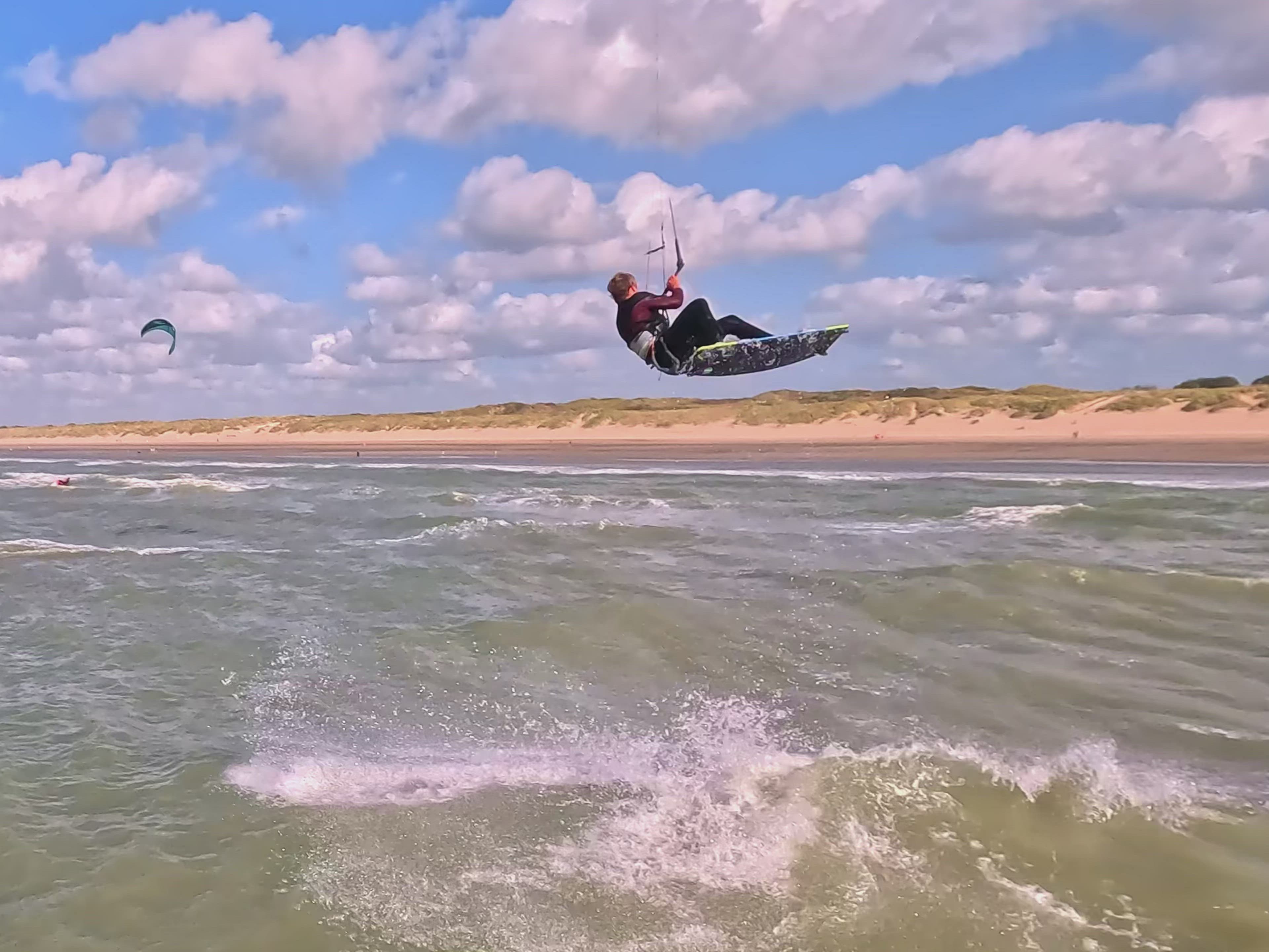 FPV drone filming kitesurfer doing big jumps in 20+ knots.Always been a dream to film kitesurfers with my FPV drone. It sets very hard conditions to fly: the strong winds blow you off your intended line. Furthermore, one steering error and the drone might salty water on the internal electronics and may not be able to continue flying and sink to the bottom of the seam, along with the recorded footage. This was my first session ever doing this. Still have to check if my electronics survived the sea, as I briefly hit the top of an incoming wave and the quad give up on me, luckily after it reached the shore :).