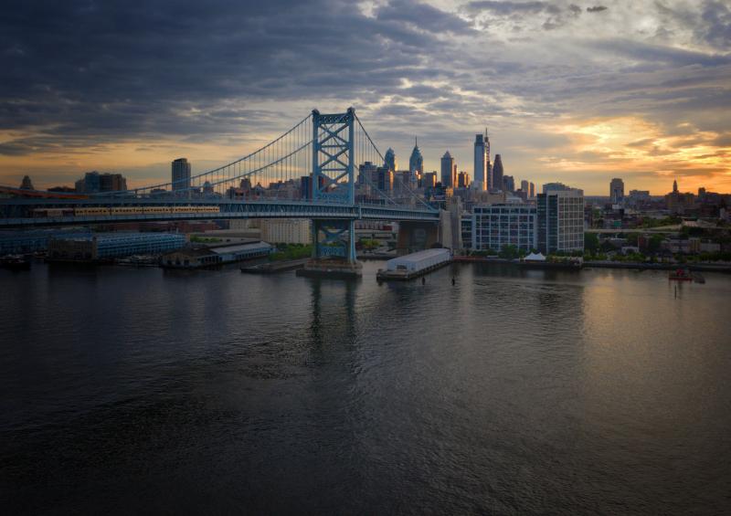 Ben Franklin Bridge and Philly Skyline at Sunset