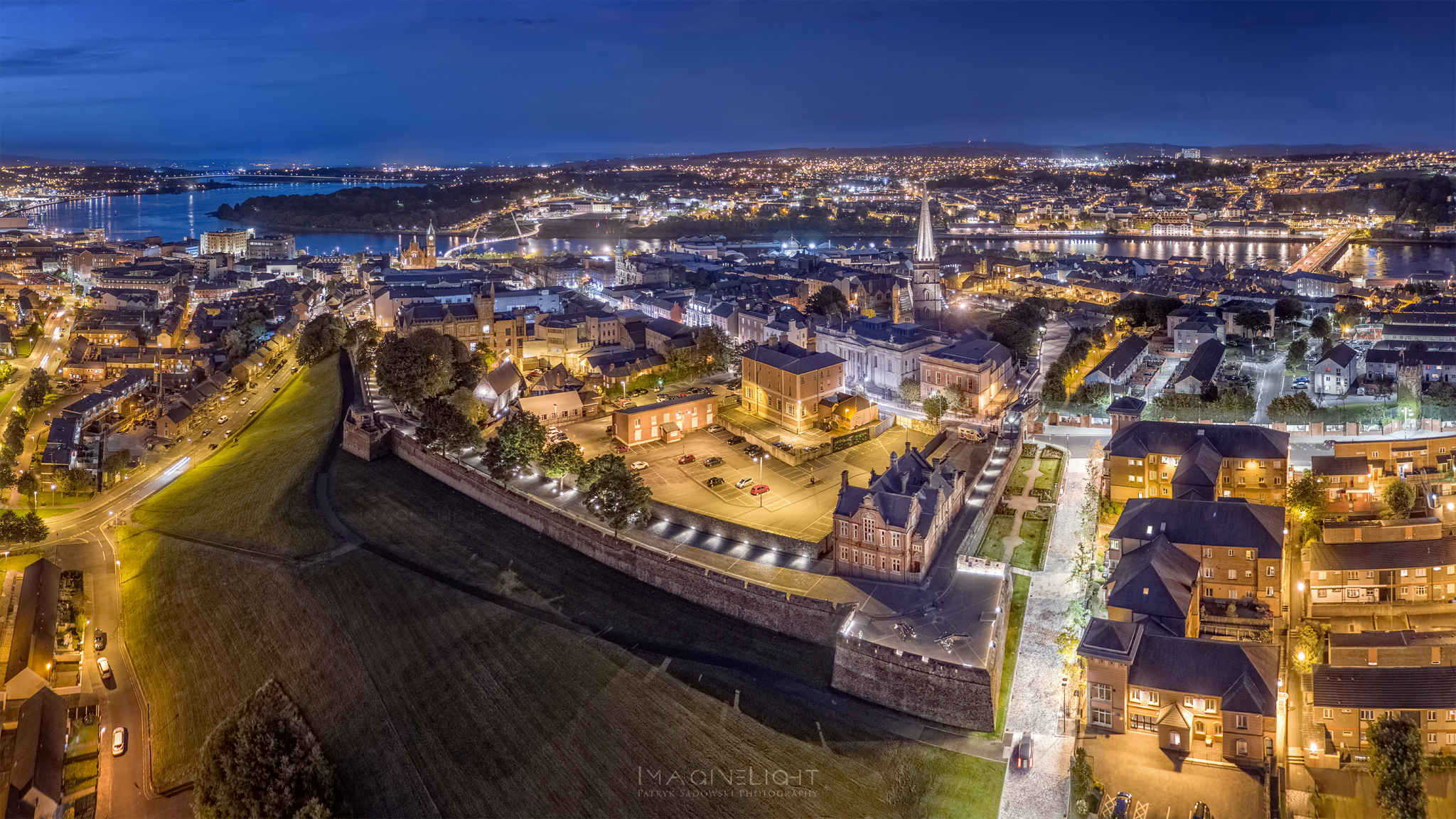 Derry City Walls at night.
