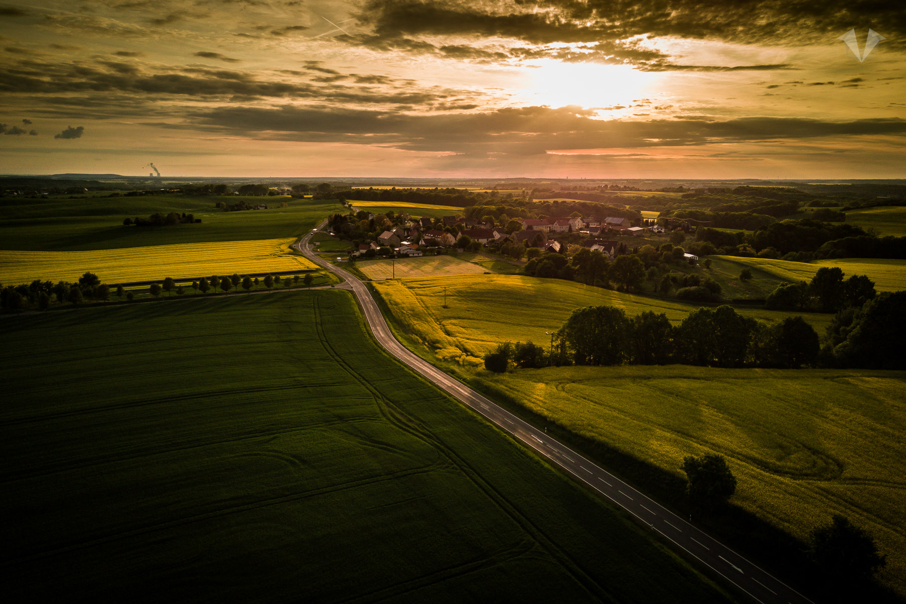 setting sun above the canola fields.