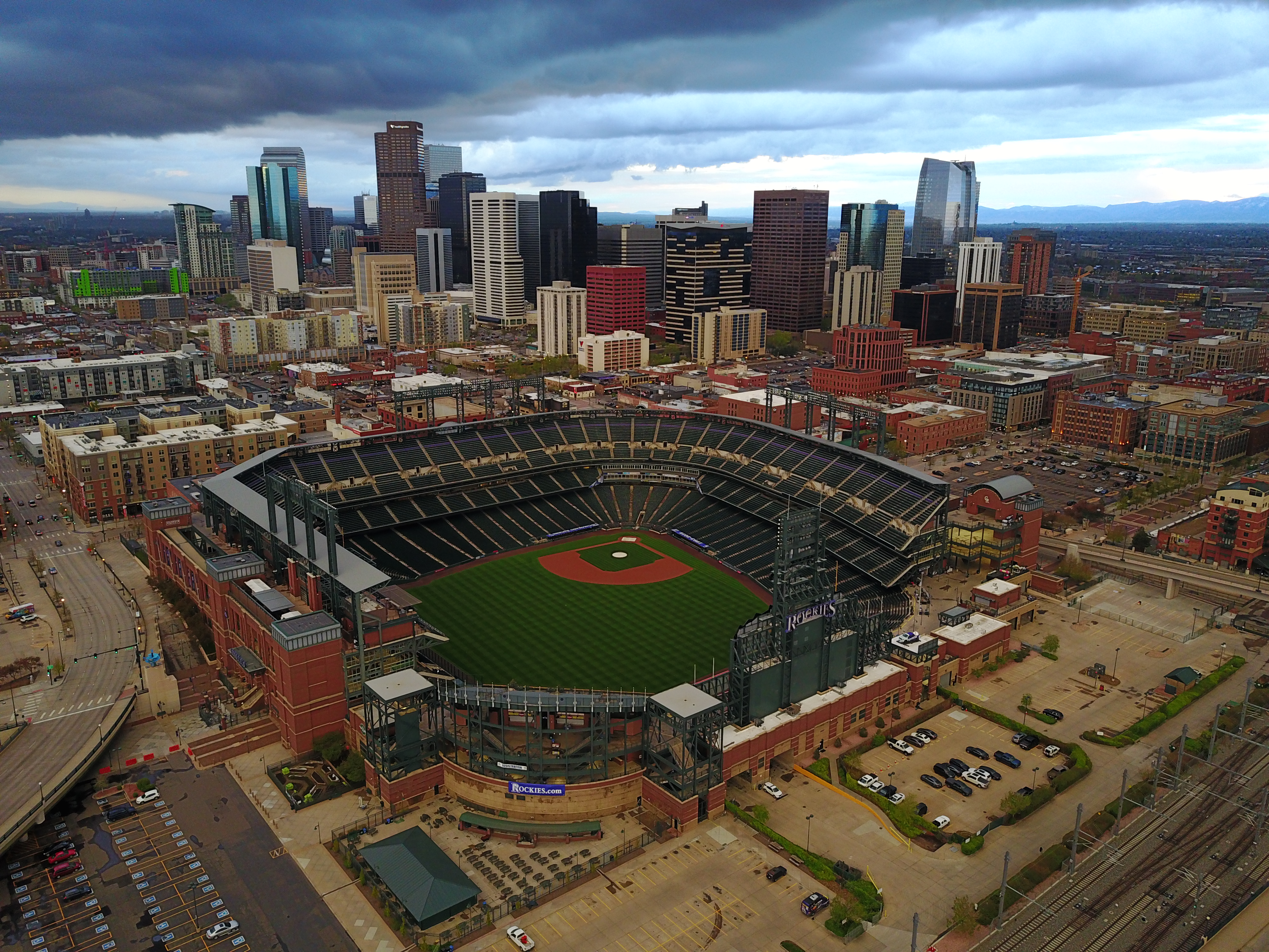 An aerial view of downtown Denver, including the beautiful Coors Field. Taken with the DJI Mavic (my first time flying the Mavic).