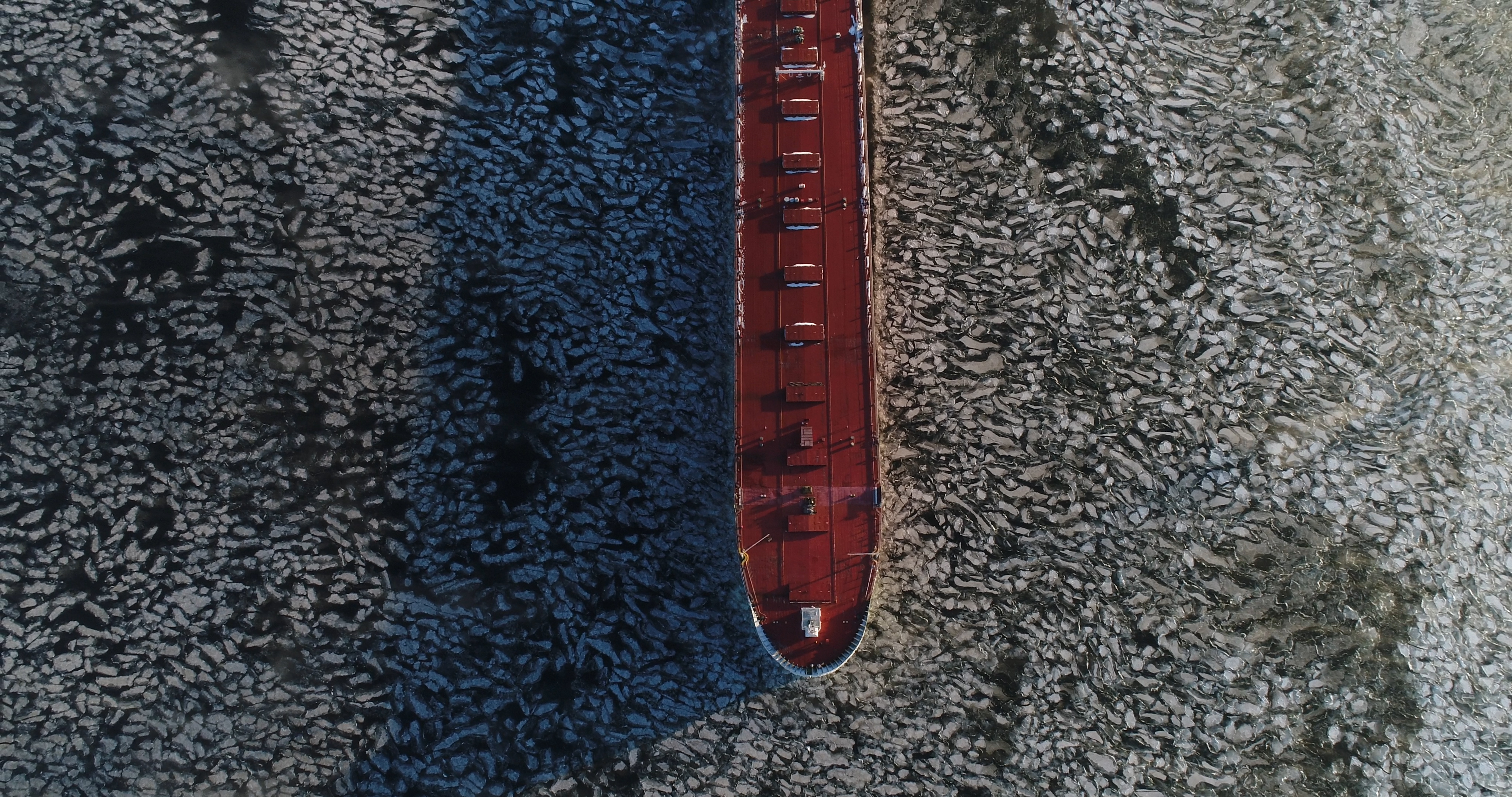 Top down shot of a barge entering Canal Park port in Duluth,MN.