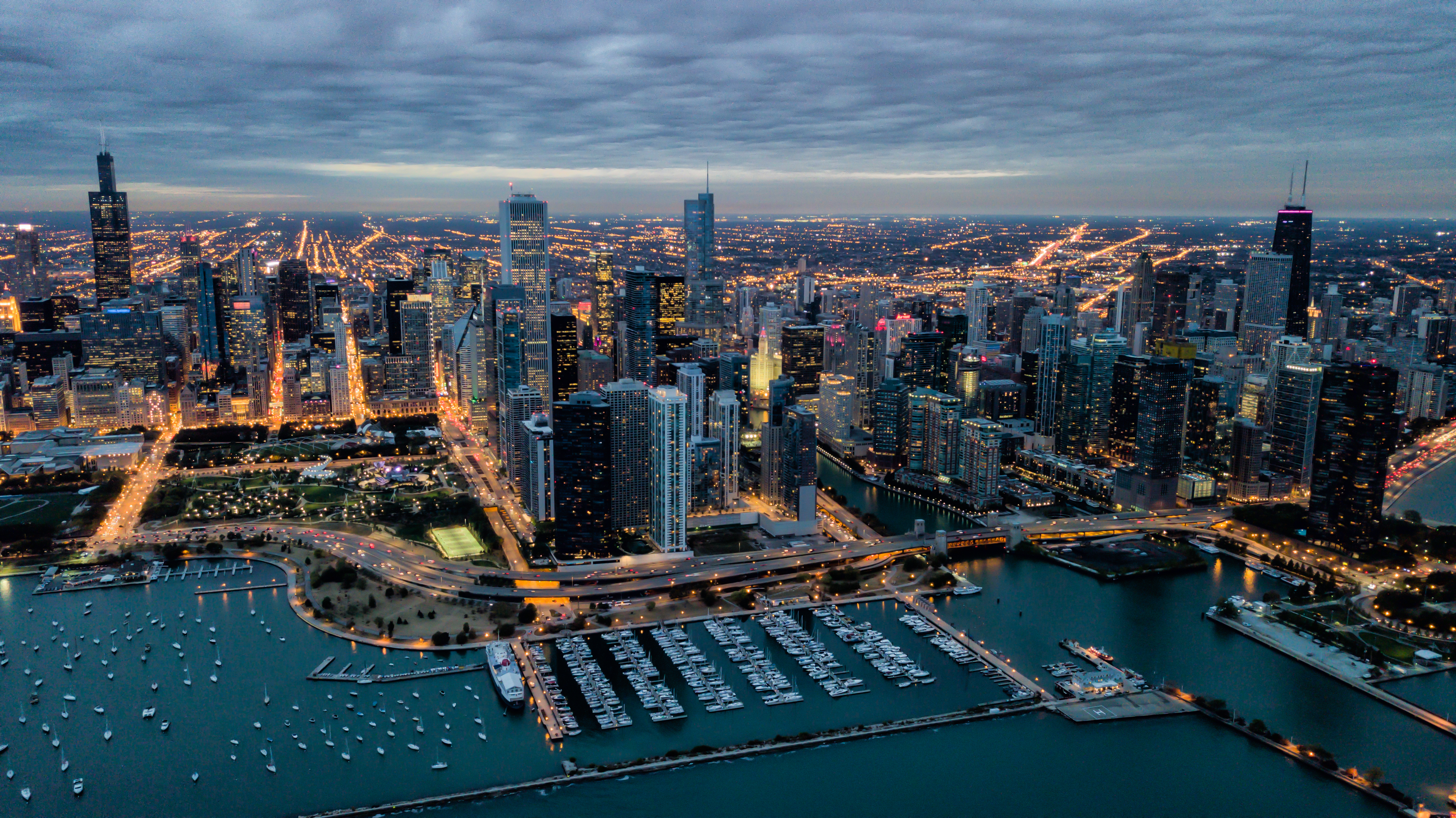 Lights On - Downtown Chicago at Sunset