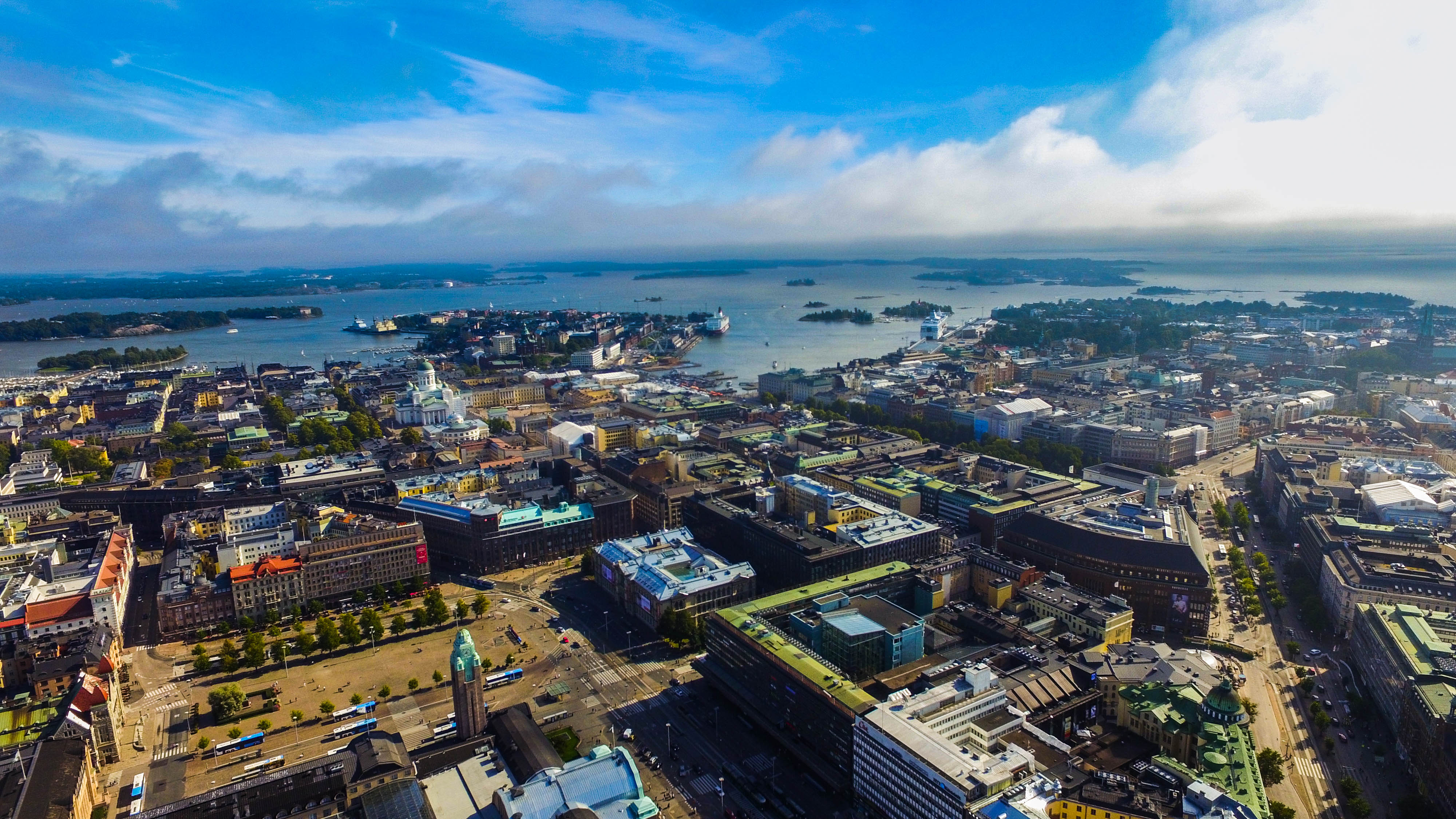 Spectacular aerial view above Helsinki center! What a warn and pleasant summer day!