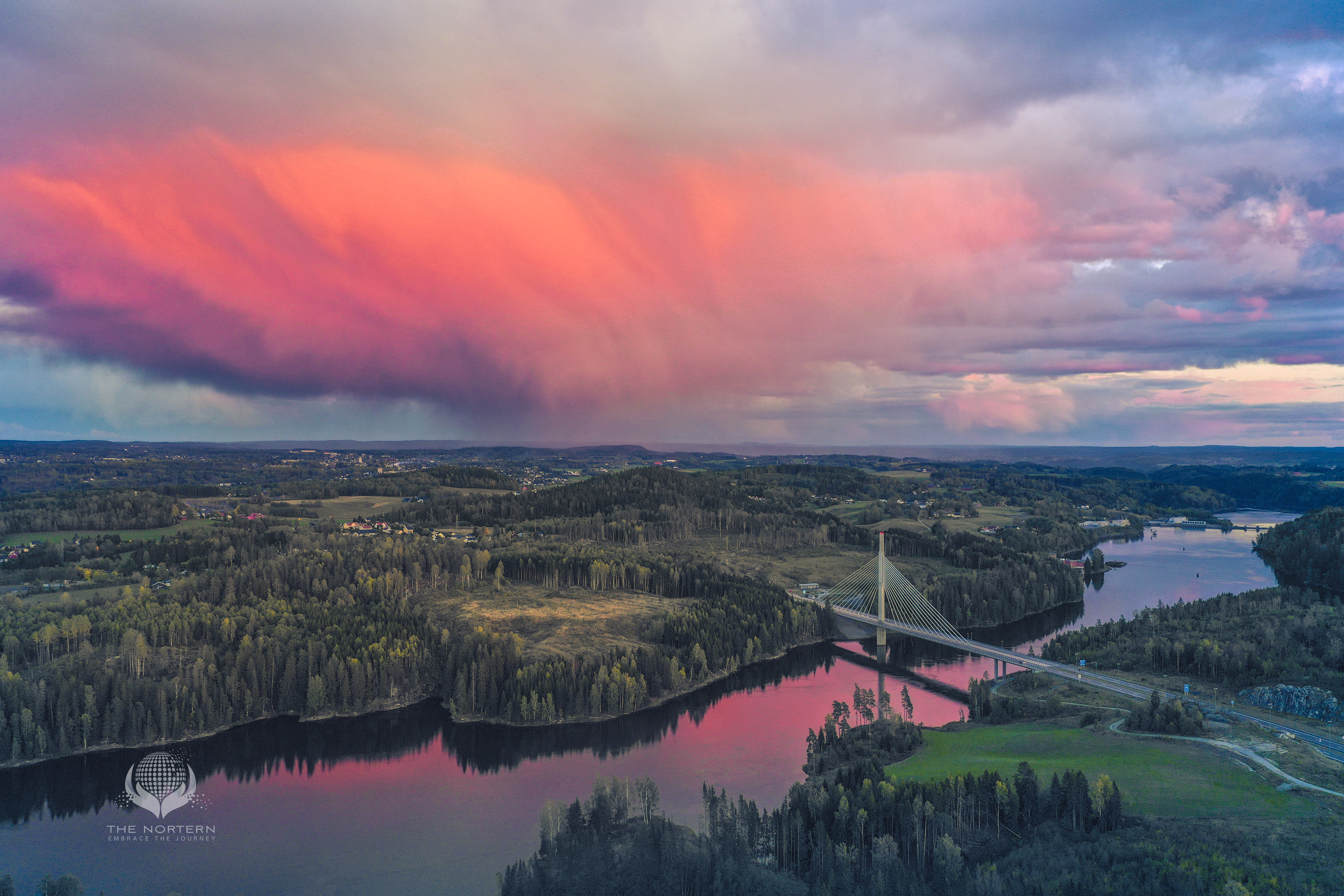 Sunset at Glomma in Norway, you see the Smaalenene bridge in the picture. The sky was coloured by the sunset and the storm clouds made it all more dramatic! Hope you enjoy it