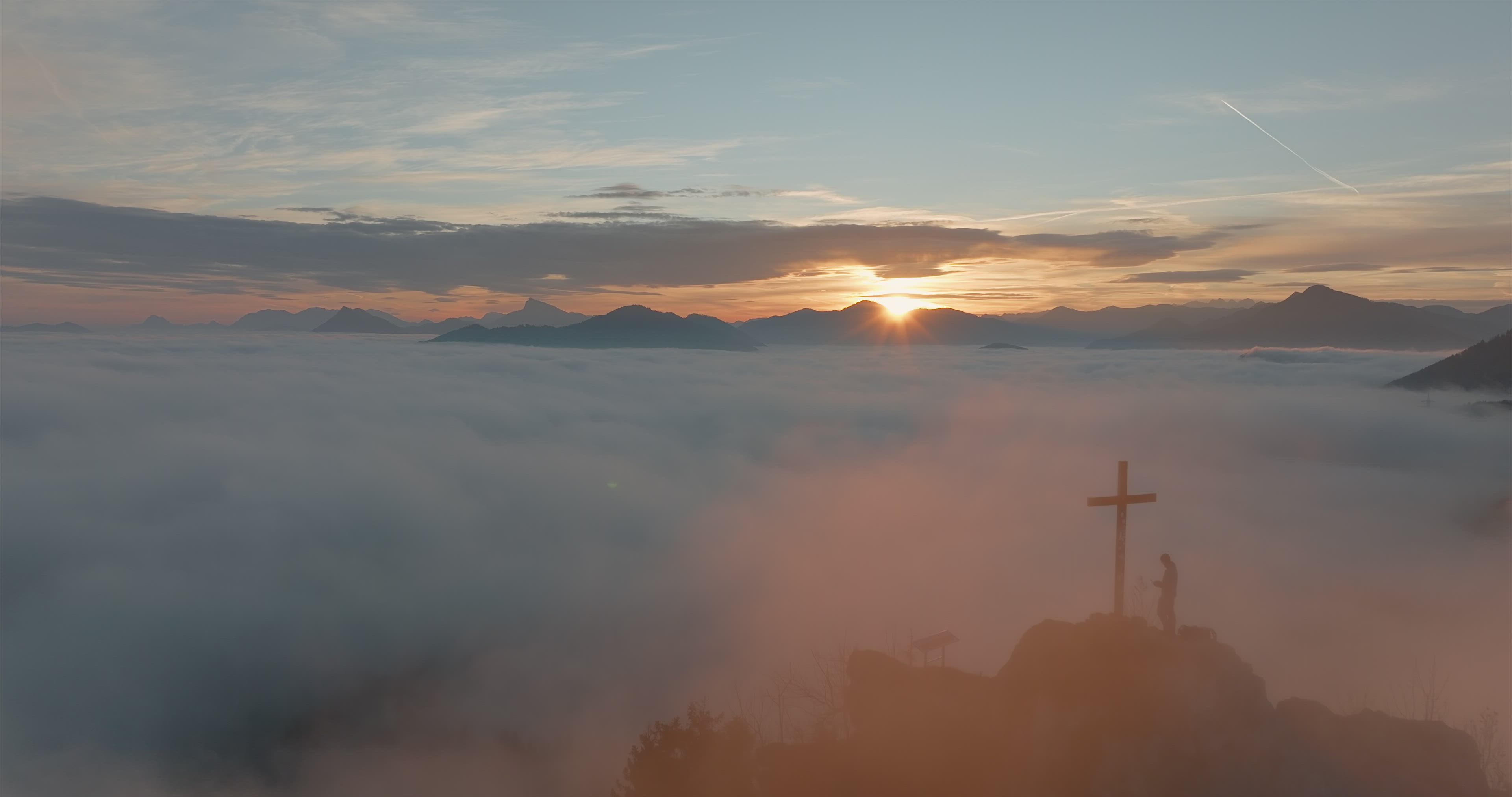 Check out these fantastic drone views from the Austrian Alps, compliments of top AirVuz contributor www.oberschneider.com. The video was filmed with a DJI Mavic Pro 3 drone in November of 2021. You'll be treated to some epic views of mountains peeking through the clouds which cover the valleys below. Some of the most dramatic footage is of the pilot himself standing atop one of the summits next to a cross, one of many such "summit crosses" which dot the Alps Mountain system across Europe.