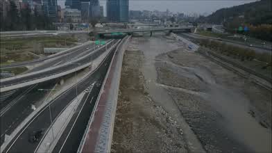 Aerial view Rio Mapocho that flows from Andes in Santiago, Chile
