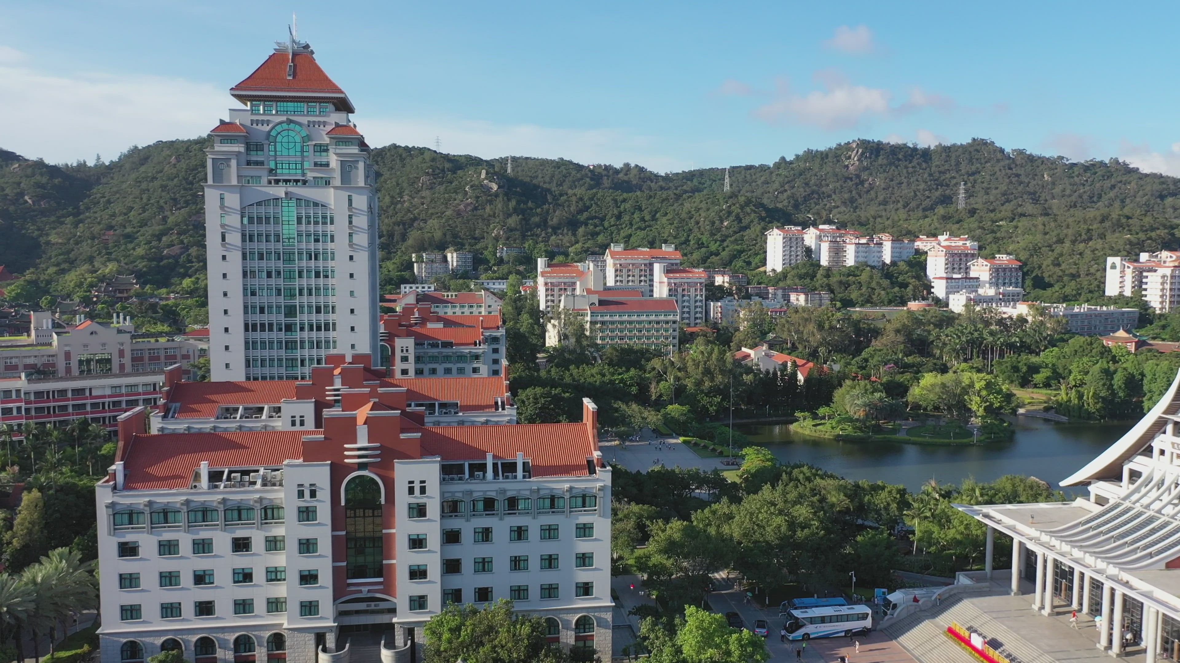 Xiamen University is a top post-secondary educational institution in Southeastern China. It's located at the south end of Xiamen Island, in the Fujian Province. Established in 1921, the school currently enrolls about 21k students. It's one of 36 universities classified as "Double A" under the central government's Double First-Class initiative to create a world-class secondary education system. Seen here in this drone video by how.chou, the university's beautiful campus is a popular tourist attraction on the island.