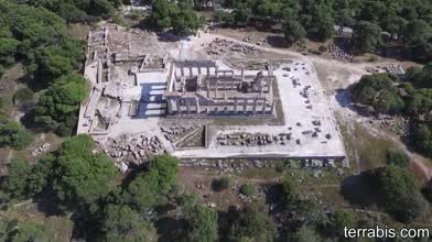 Ancient Nemea. Zeus Temple.Greece drone video