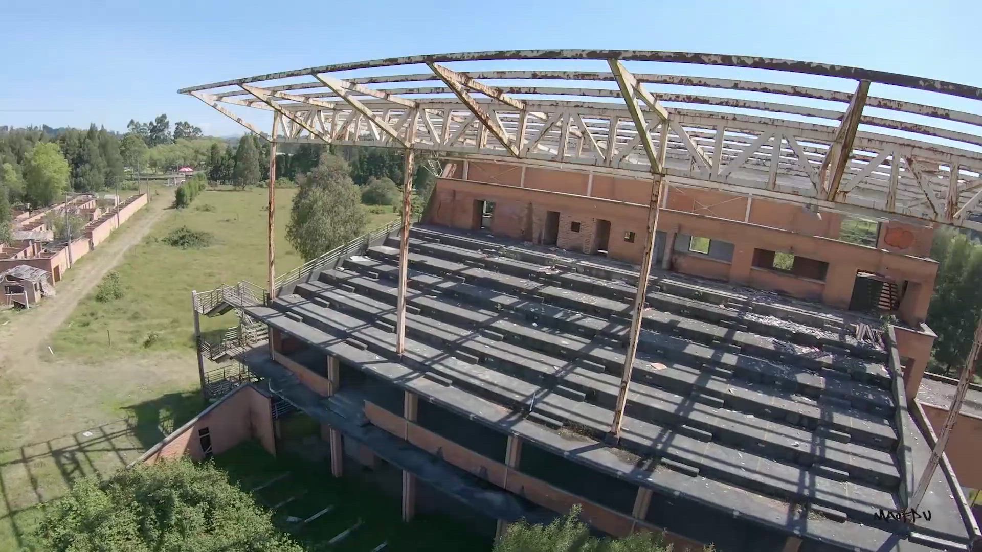 Flying drone inside BANDO at NIGHT