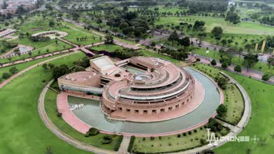 Circling around the unique architecture of the Virgilio Barco library in Bogotá, Colombia.