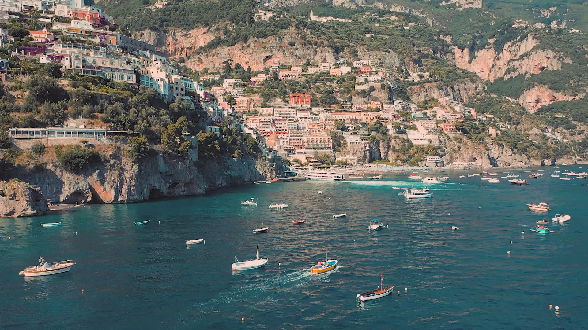 Italy, Positano - Long Range Flight Over the Coast
