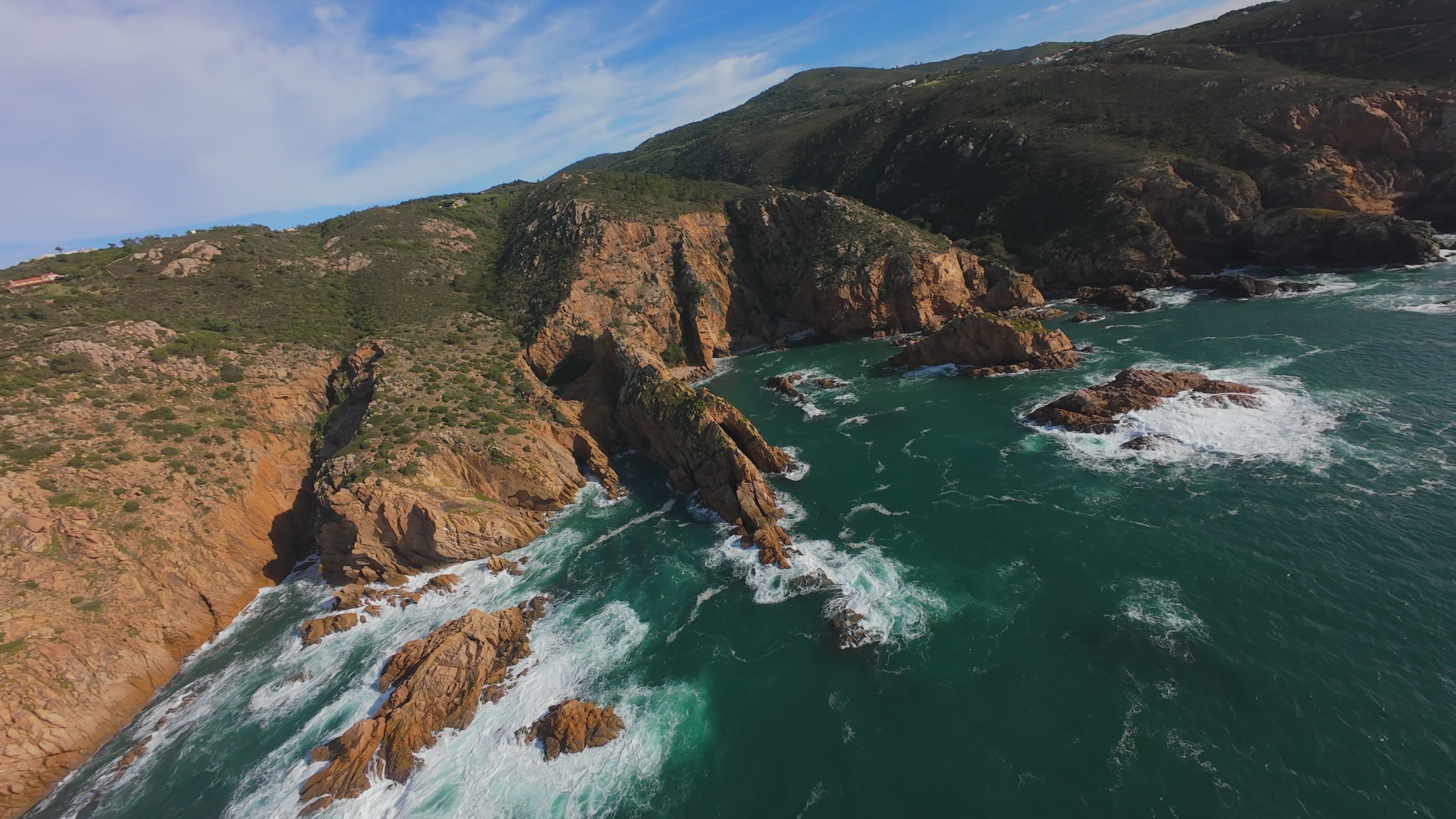 Drone FPV - Narrow Ocean Gap in Lourical at Sunset.