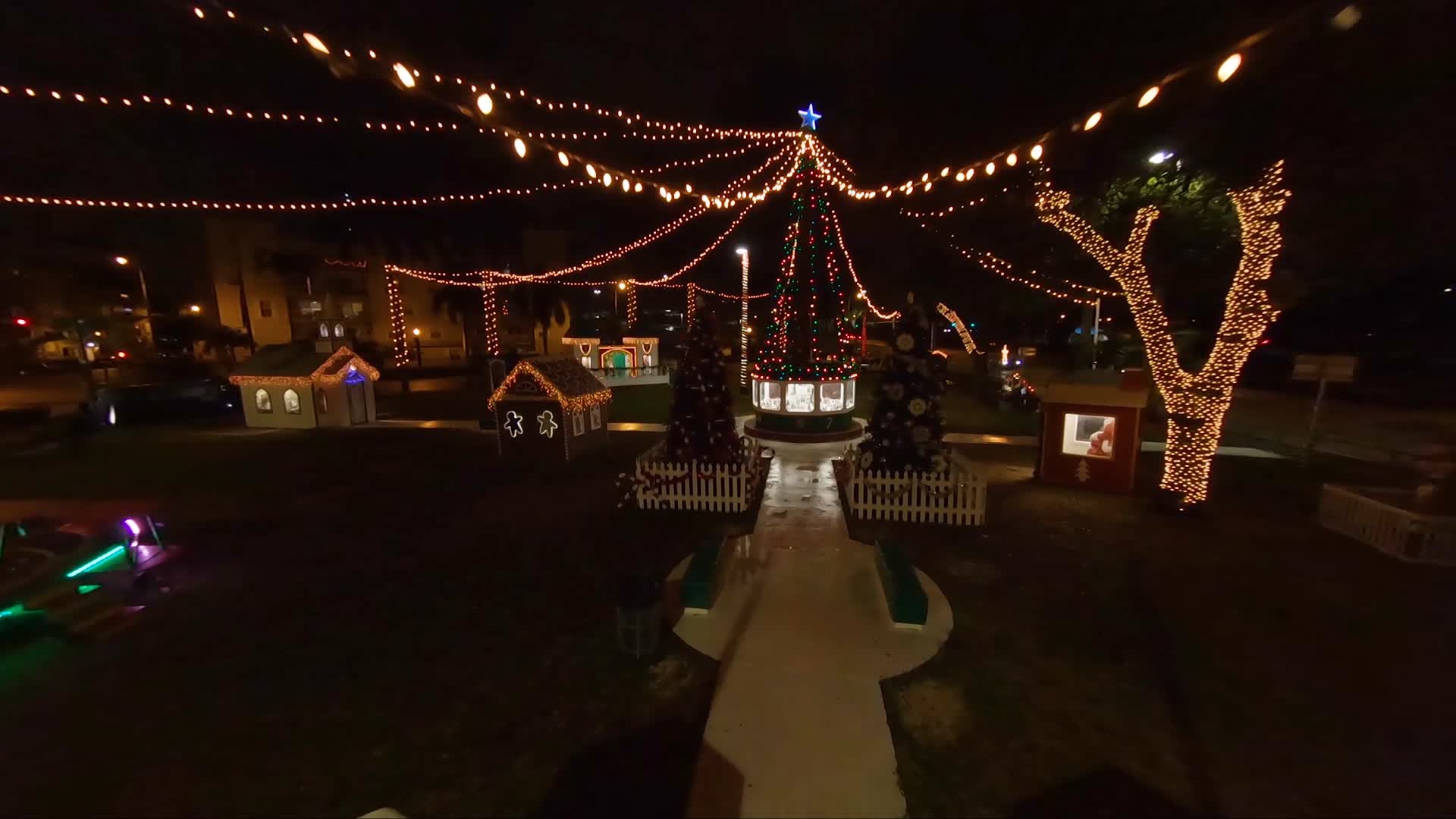 Flying Through Festive Lights