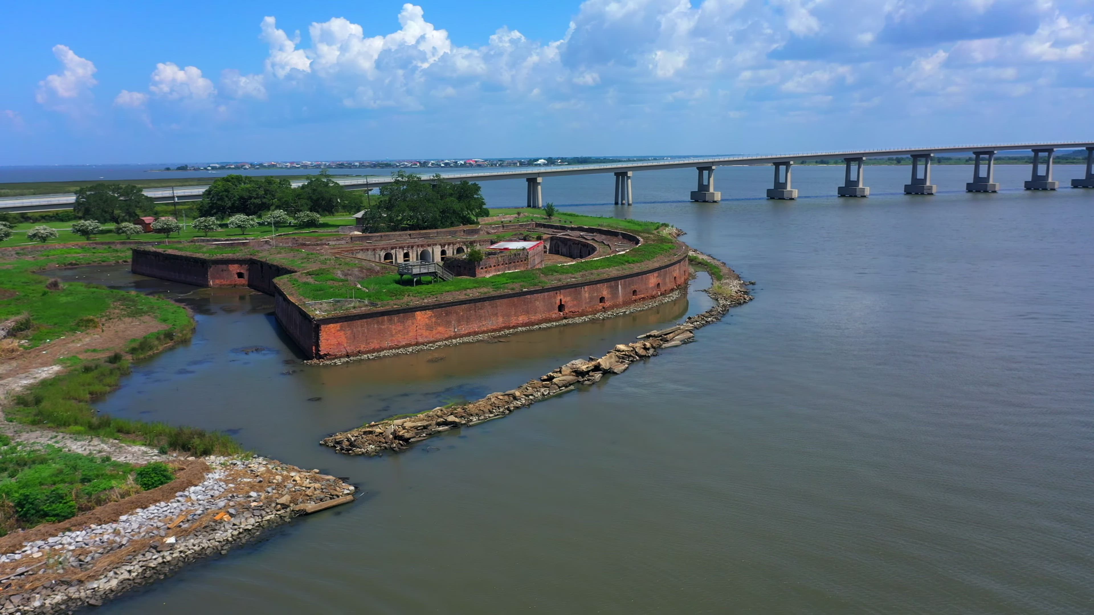 Prior to the 20th century, the city of New Orleans was considered highly vulnerable to seaborne invasion. As the area passed from Spanish to French to American to Confederate and back to US control, a series of fortresses were built to protect the great city from attack via the Gulf of Mexico. In this drone video by AirWorthy Tours, you'll get aerial views of four of these fortresses: Fort Pike, built during the War of 1812; the ruins of the old Spanish Fort; and Forts St. Philip and Jackson, site of a major Civil War siege.