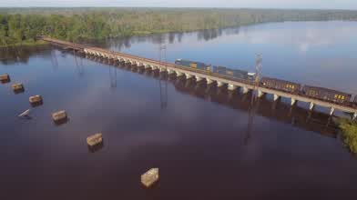 A train crossing the Ogeechee River in Southeast Georgia, USA.