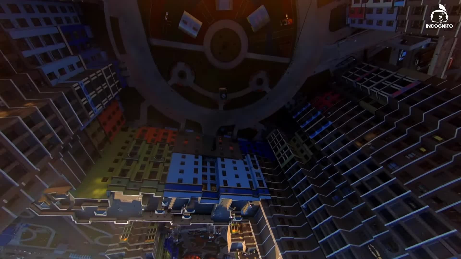 Colorful building or loop-dive training apparatus.