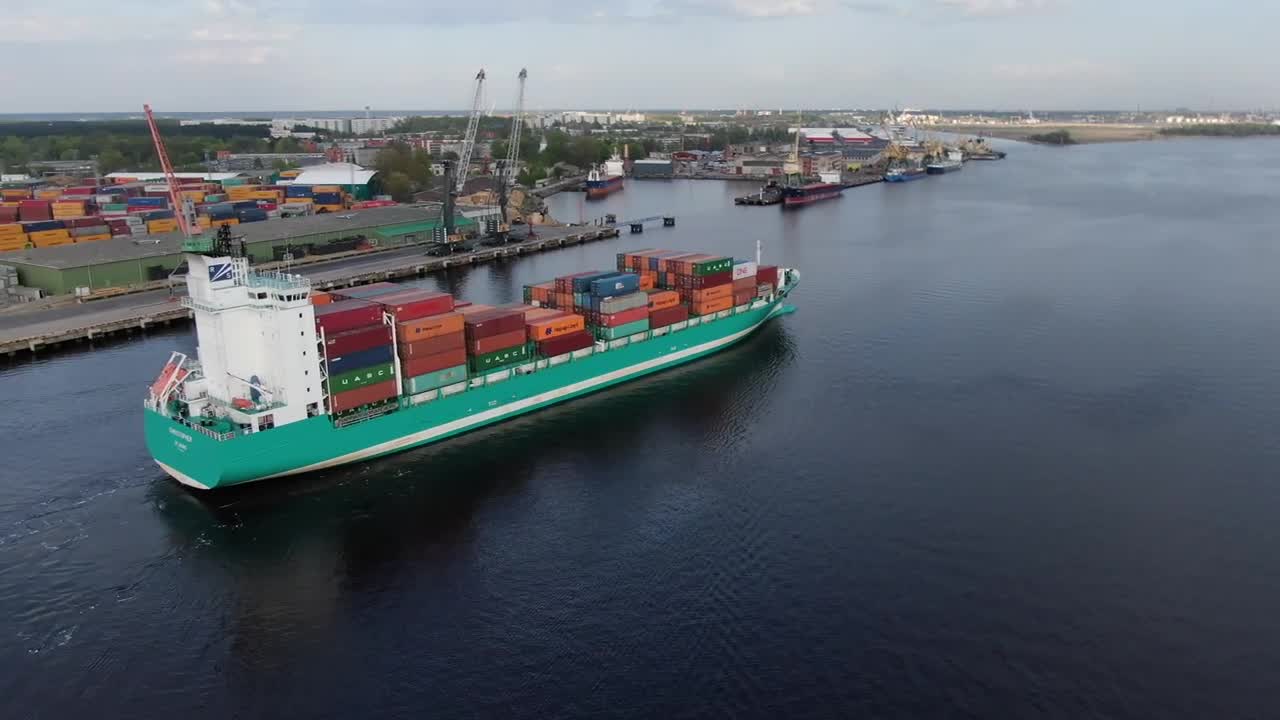 Containership CHRISTOPHER entering Riga Port. DJI Mavic 2 Zoom.