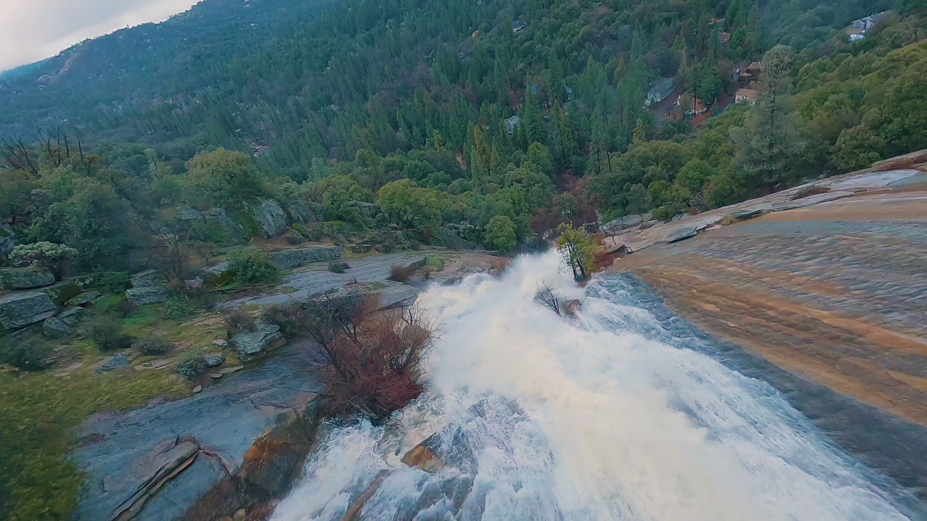 The weather has been crazy in CA the last few weeks pushing our streams to record flow rates! This is a local waterfall that is usually no more than a trickle. It's a rare sight to see if flow like this! It's been on my bucket list of FPV for a while now and I'm glad I finally got to rip it!
