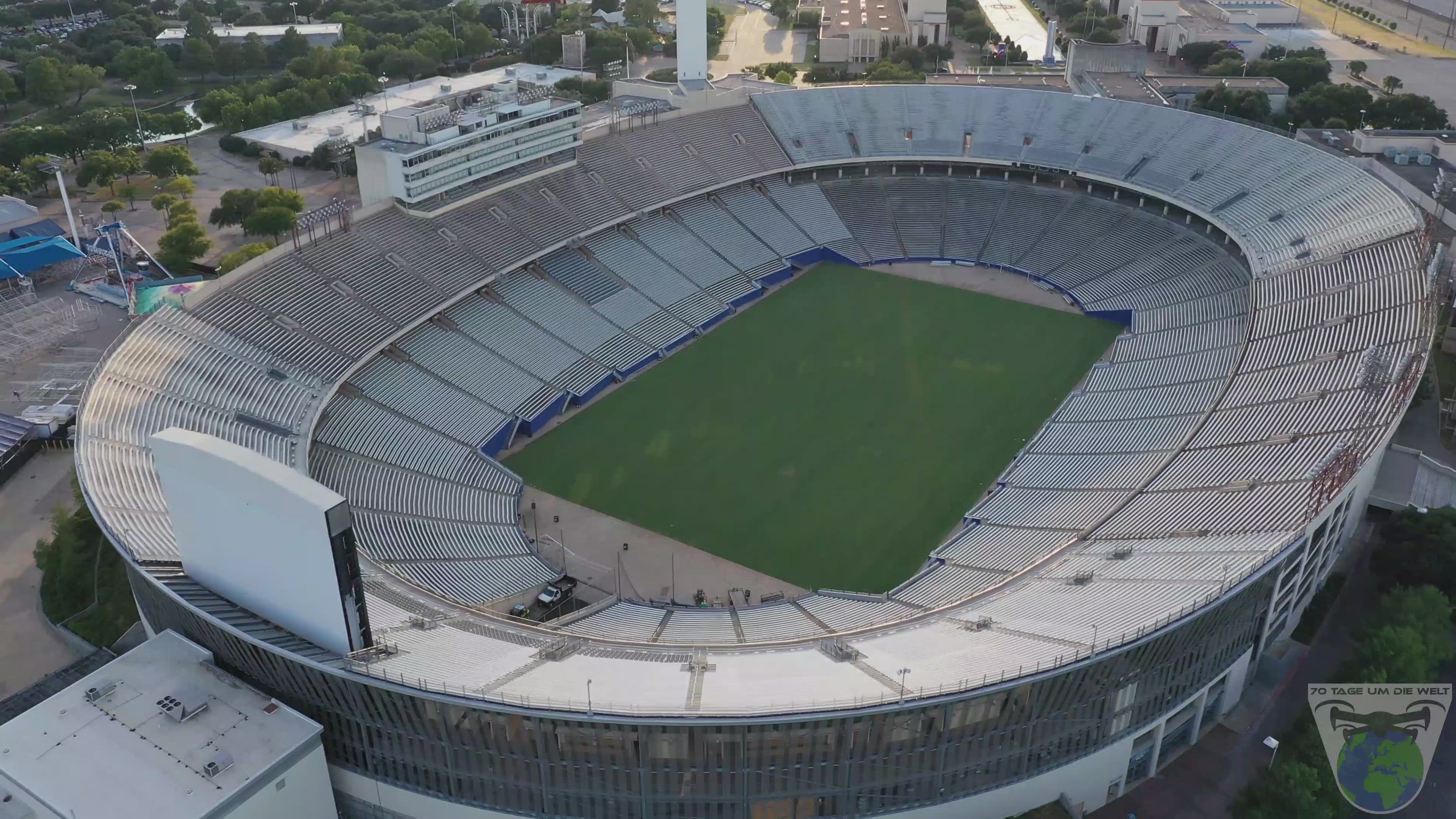 Here are some great views from two iconic spots of Dallas, Texas, compliments of contributor 70daysaroundtheworld. The first part of the video was filmed around the Cotton Bowl Stadium. Built in 1930 on what was the Texas State Fair Grounds, the venue was the home of the Cotton Bowl Classic until 2010. The second half of the video features nighttime drone footage of the Margaret Hunt Hill Bridge. Opened in 2012, it's a major element of the Trinity River Project to redevelop the area just west of downtown into an urban green space.