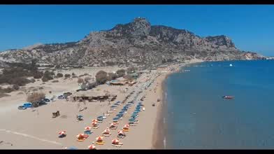Tsambika (or Tsampika) is one of the most beautiful beaches on Rhodes. A long, broad beach with fine, golden sand and dozens of colourful little flags marking out the various eating establishments and beach sports centre. Apart from these, and a mini-market next to the bus stop, there is absolutely nothing else here - nothing except crowds of people of all ages and nationalities, who come to swim in the emerald crystal-clear water and admire the imposing rock with the Monastery of the Virgin of Tsambika (or Tsampika), from which the beach has taken its name. The virgin of Tsampika is said to work miracles and young woman having diffi culty in conceiving often pray for her aid. If their prayers are answered, they name the child after the Virgin