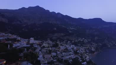 Twilight Drone Pullback of Positano, Italy on the Amalfi Coast