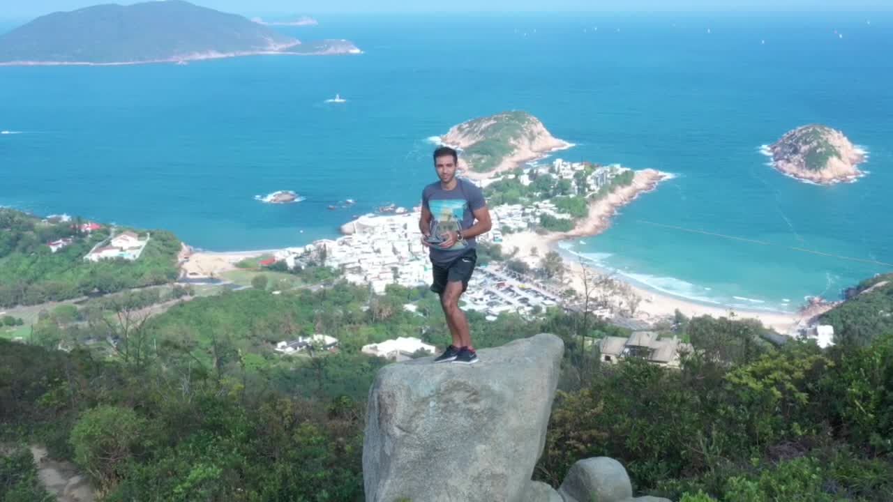 Doing a dronie on top of the Dragon's back hiking trail in Hong Kong