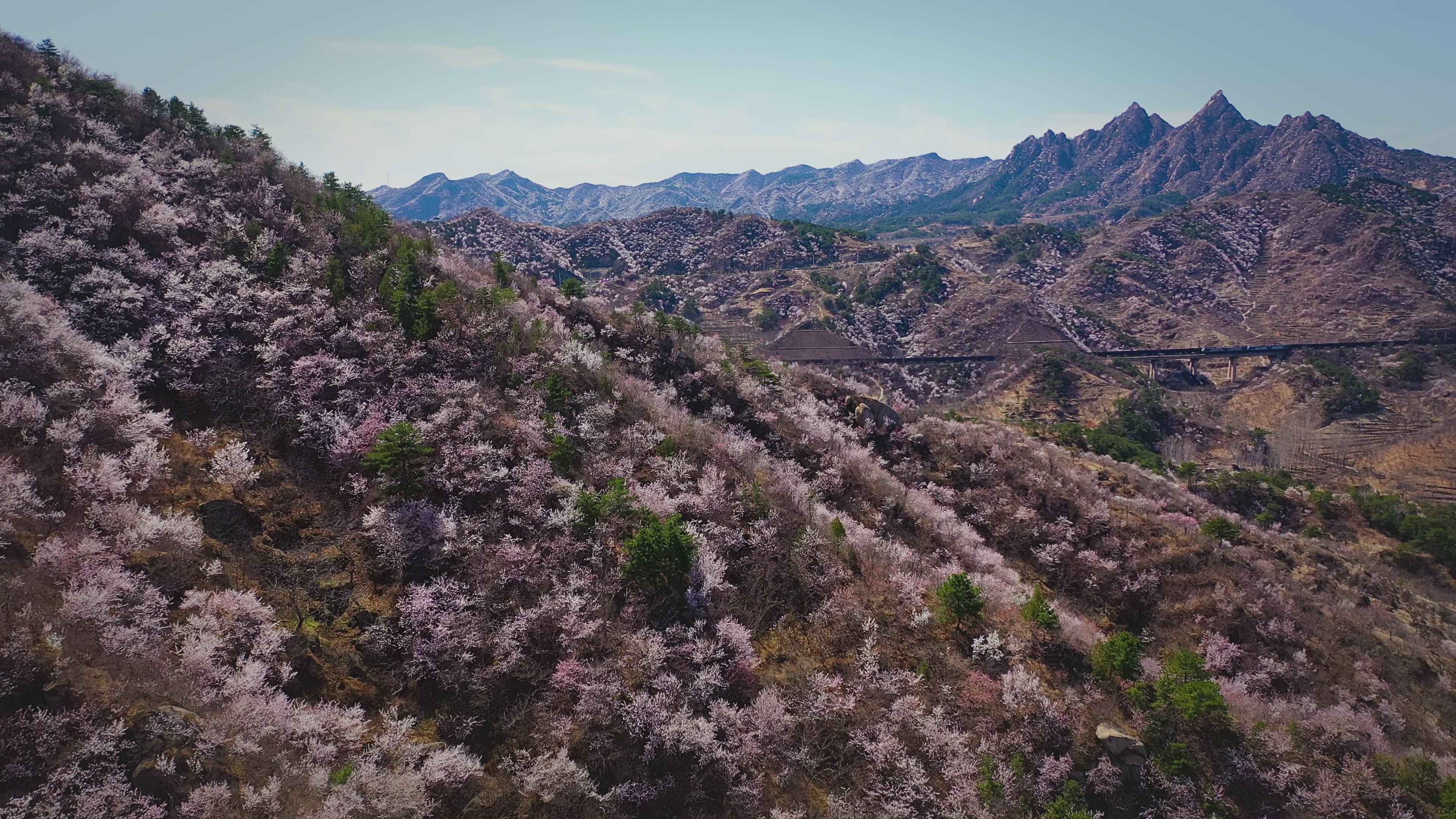 Every spring, thousands of apricot blossom all over the mountain