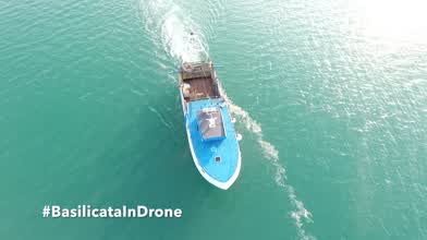 Fishing boat in high sea with movie drone at Italy Italia