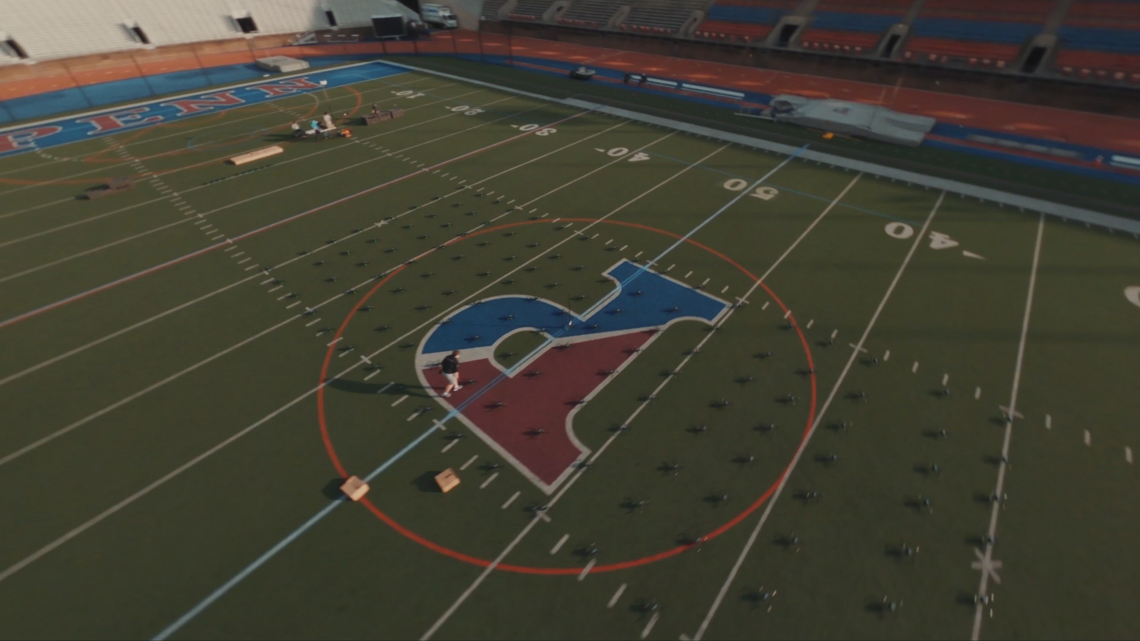 Fly-Through Verge Aero prepping for their Covid19 Drone Light SHow for the healthcare workers of Philadelphia.