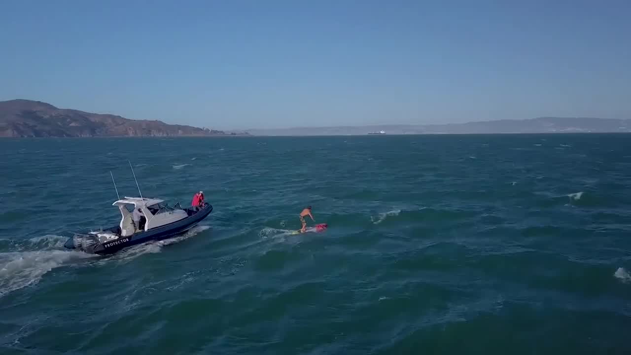 World Champion Kai Lenny getting in some training time in San Fransisco for the RedBull Race