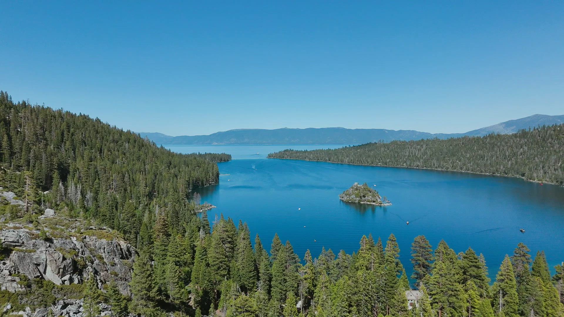 Sights and views from Cave Rock, Fannette Island, and the East Bank of Lake Tahoe with Mini 4 Pro.