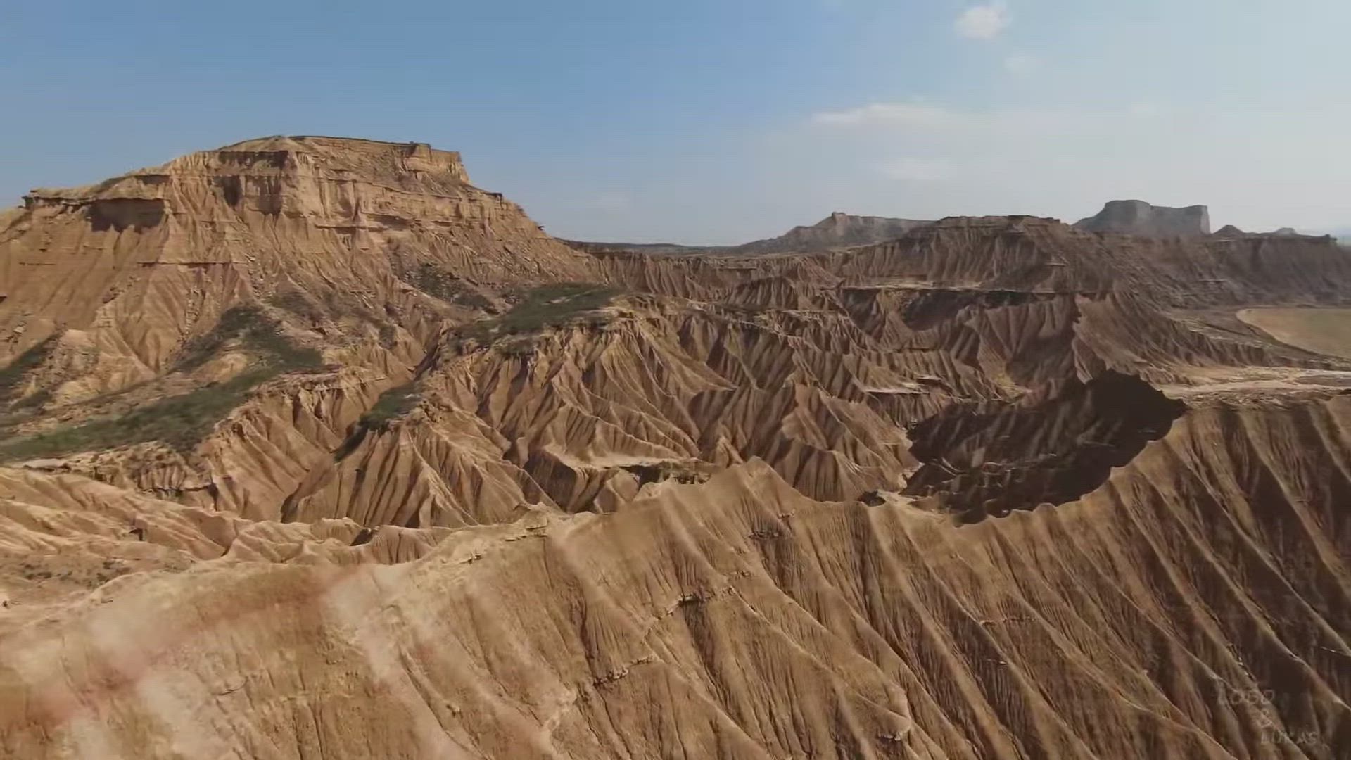 Check out these marvelous drone views of an other-worldly region in Spain, compliments of AirVuz contributor and pilot Lobo&Lukas. The video was filmed over the Bardenas Reales, a semi-arid region in Navarre, a semi-autonomous region of northern Spain which is largely Basque-speaking. The highly distinctive rock structures which characterize the Bardenas Reales are a function of the area's unusual soil composition as well as wind and water erosion patterns. It's part of the valley of the Ebro River.