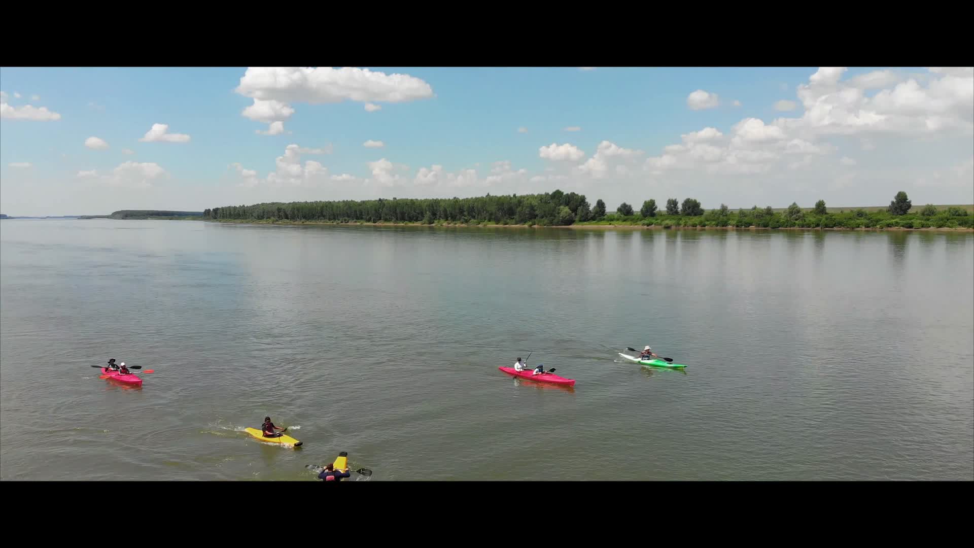 Fun trip on beautiful Danube river in kayaks. Aerial view of the interesting moments, shots with Mavic Air.