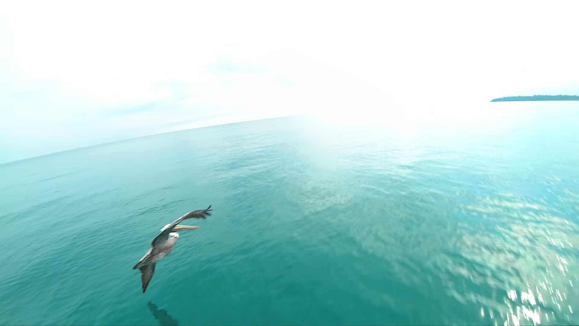 Pelican spotted by a racing drone for the first time