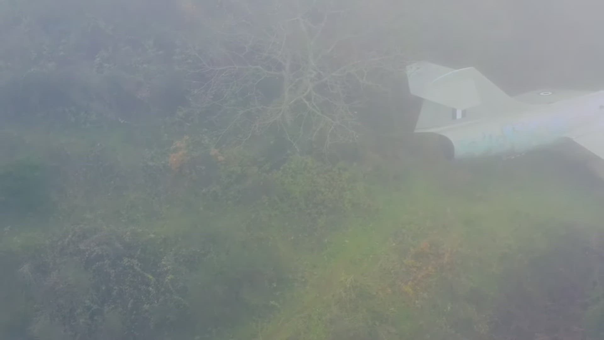 Between forest and fog, there is a plane
