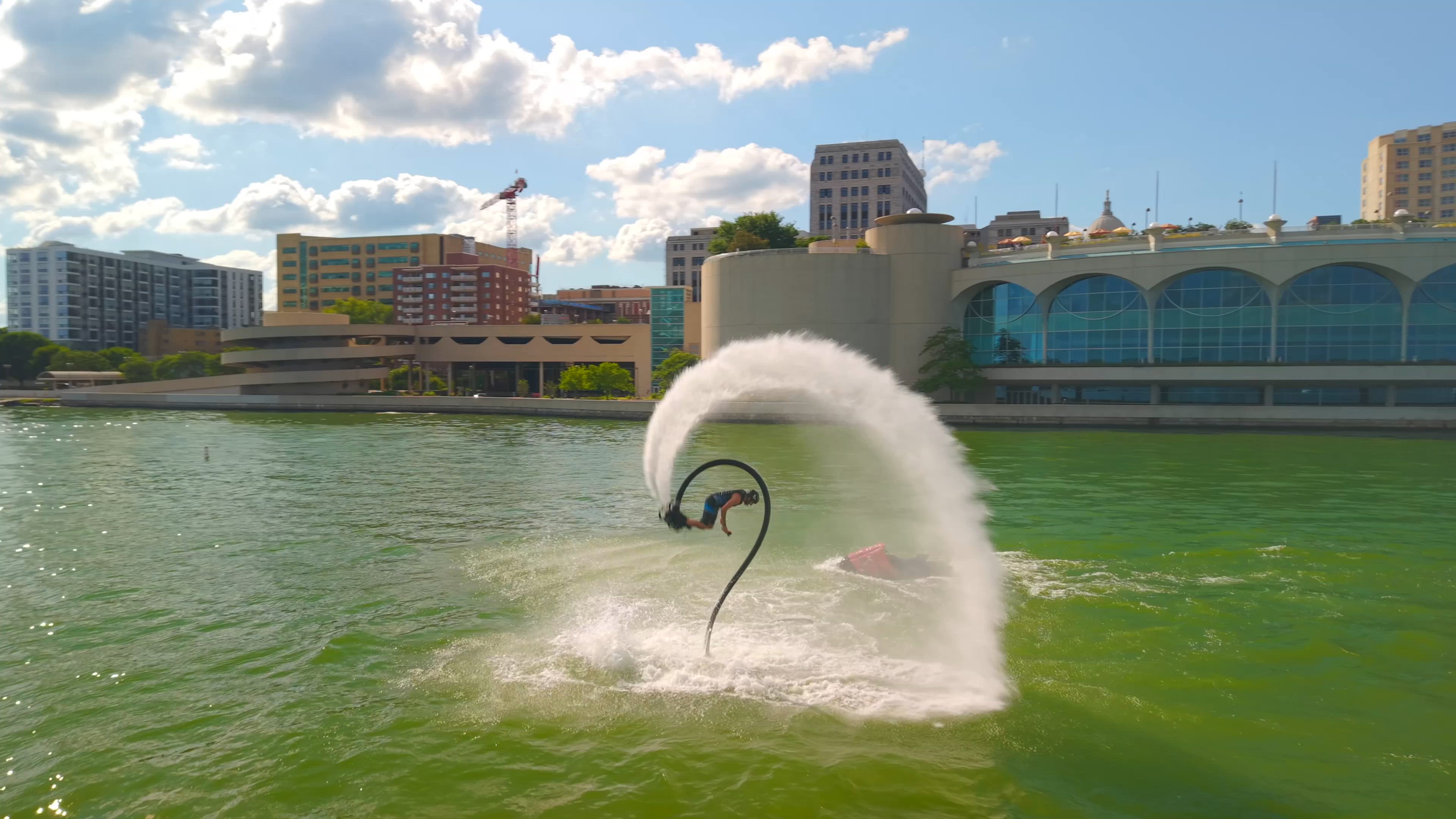 Putting on a Show in front of the Monona Terrace on Lake Monona in Madison Wisconsin