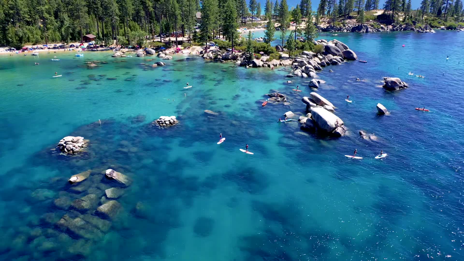 Sand Harbor is the along the eastern side of Lake Tahoe. The crystal blue water, pine covered mountains rising from the lake...and the large granite boulders that line the shore line and emerge from the blue waters make this one of the most scenic spots along what is already one of the most stunning spots in the US. The eastern shore (the Nevada side of the lake) was mecca for lumber barrens. In the late 1800's Sand Harbor was a loading site for lumber harvested from the nearby mountain sides. The eastern part of the lake remained in private hands through much of the 1900's with one of the largest land owners being an excentric San Franciscan, George Whittell, who owned 27 miles of shoreline and build the magnificent Thunderbird Lodge just south of Sand Harbor. Through a variety of deals the State of Nevada and the US Forest Service acquired much of this property. As a result, today the eastern shore of Lake Tahoe remains much as it has for much of history...a pristine lake front along the largest Alpine lake in the US. Today Sand Harbor is a popular spot for kayakers, SUP's, swimming and boating and a launching spot for exploring the east side of Lake Tahoe. It's also home to the Lake Tahoe Shakespeare festival. All in all...an amazing place.