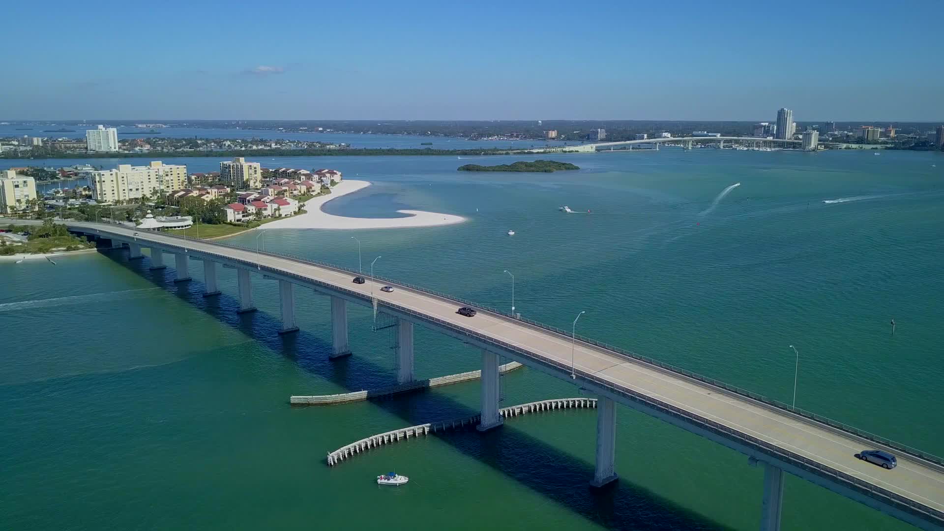 Short flight over Clearwater inlet from Sand Key Park