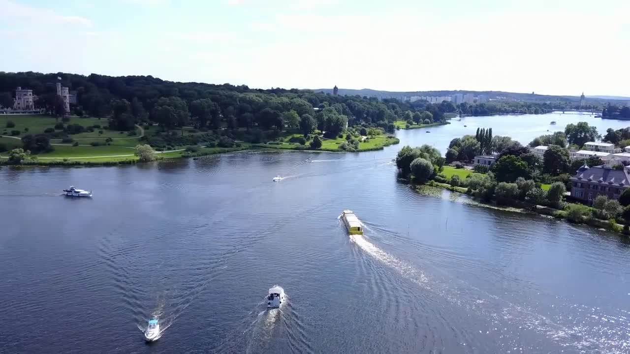 Schloss Babelsberg, Glienicker Brücke Vogelperspektive / Бабельсберг, замок, Мост Глинике