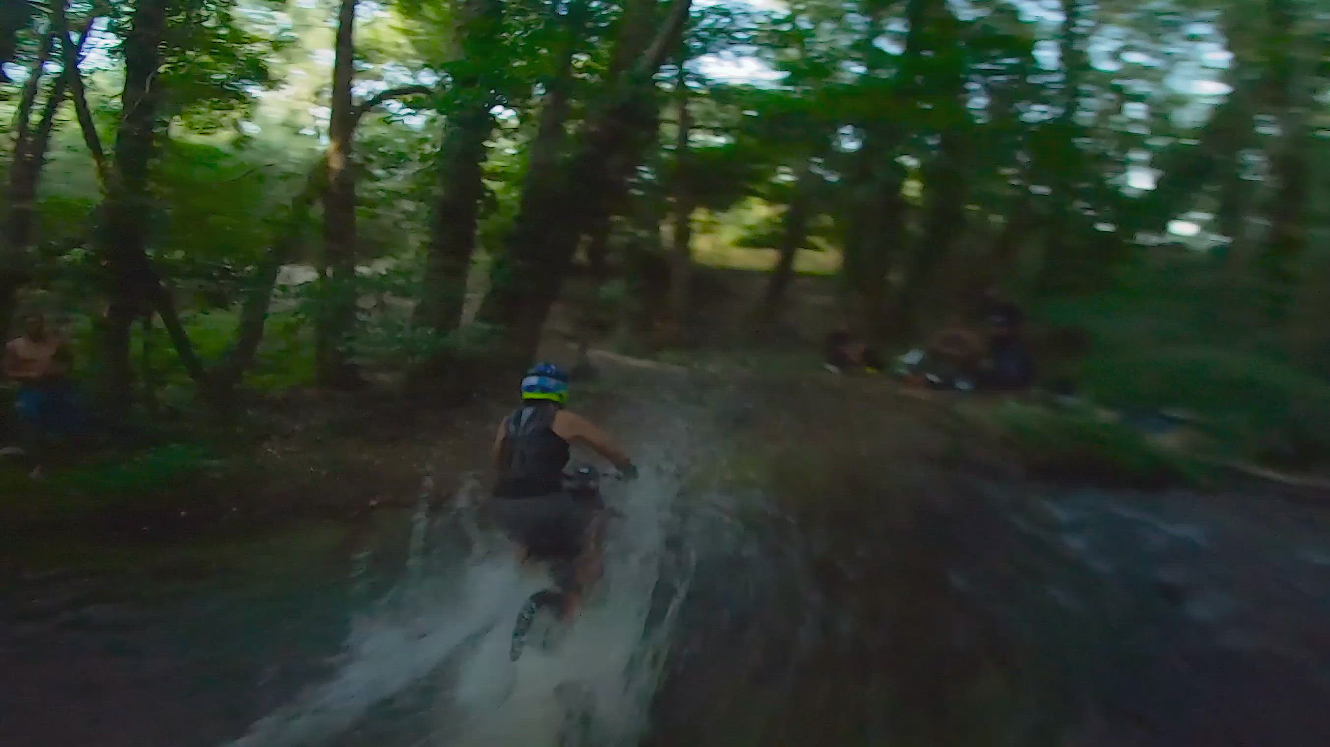 Shasing Electric moto cross in forest