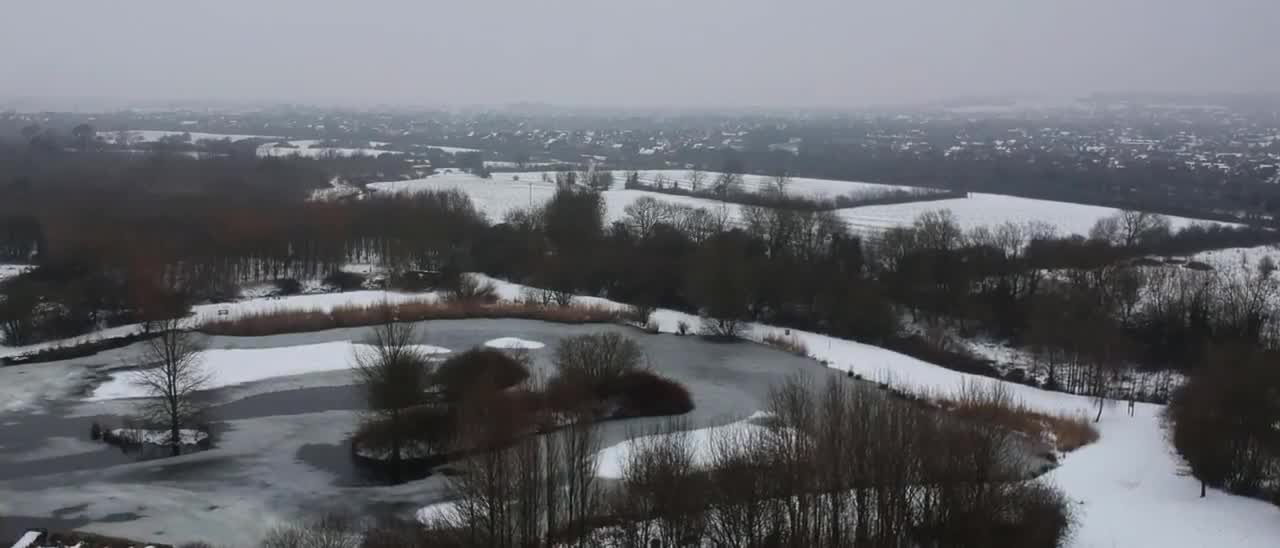 Snowy Lake at Mouldon Hill, Swindon UK. Filmed by DJI Spark